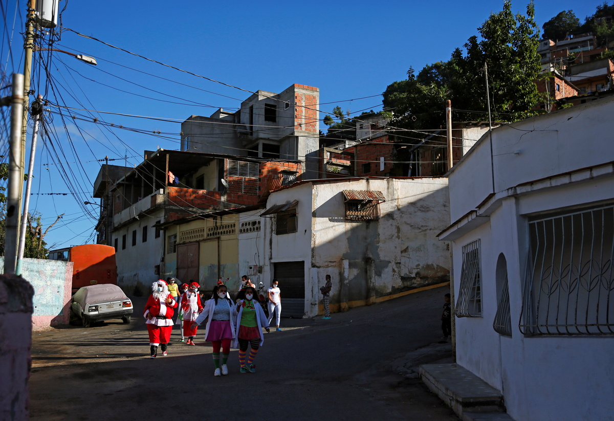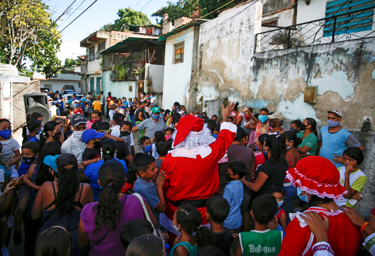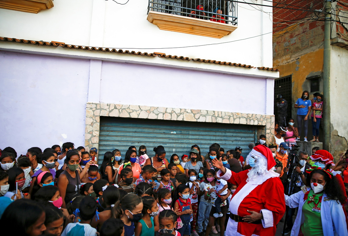 Santa Claus walked the streets of the outskirts of Venezuela's capital Caracas this weekend, giving children gifts ranging from bread to clothes at a time when the country is struggling with the coronavirus pandemic and an economic collapse.