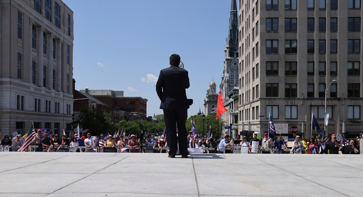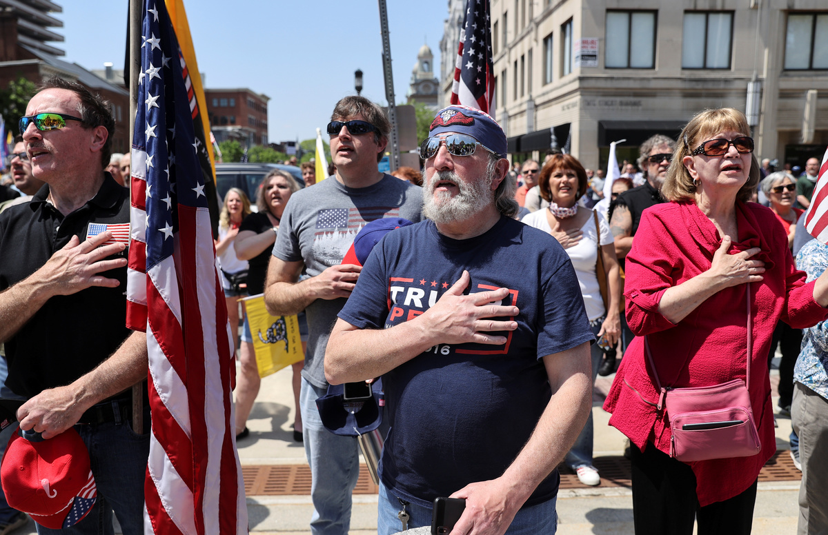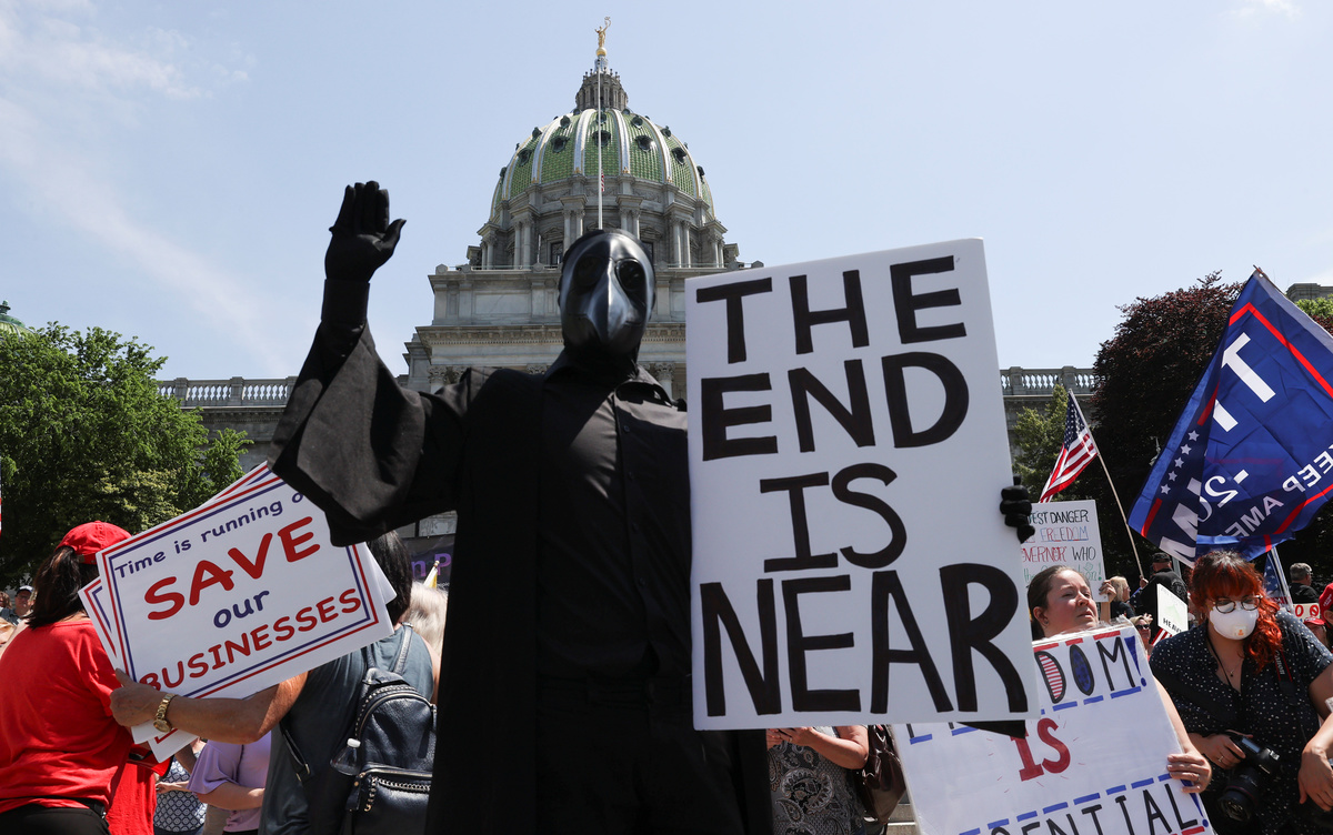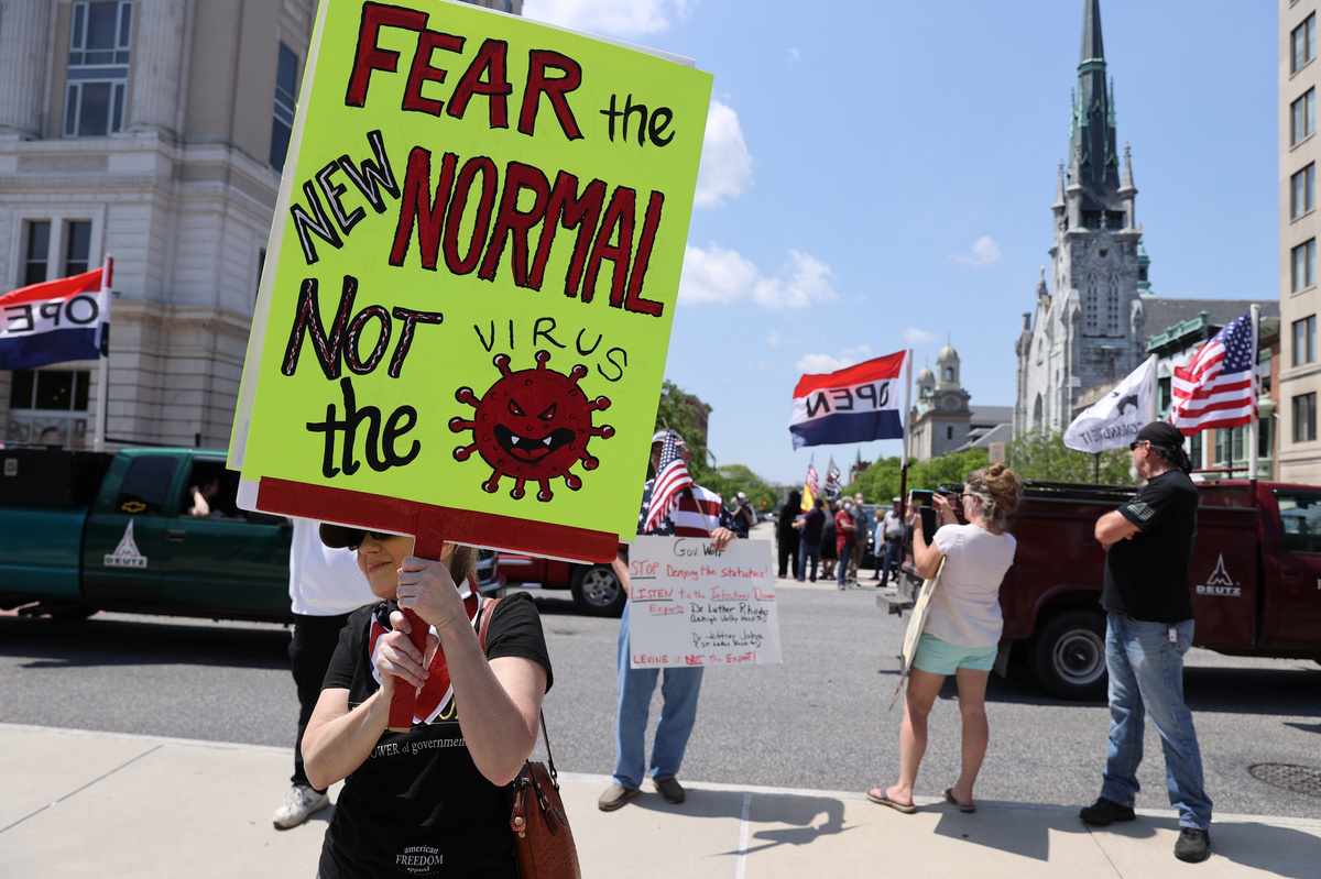 In Pennsylvania, hundreds of demonstrators gathered on the steps of the state capitol building in Harrisburg where they waved American and Trump 2020 flags and homemade signs, calling for the governor to fully reopen the state. Motorists including a man dressed as Santa Claus in a red convertible honked their horns in approval as they drove by.