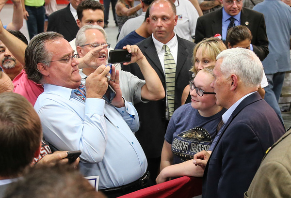 "You have nominated a man who is a fighter, who is a winner," Pence, the Indiana governor, told about 200 people who gathered in a warehouse.