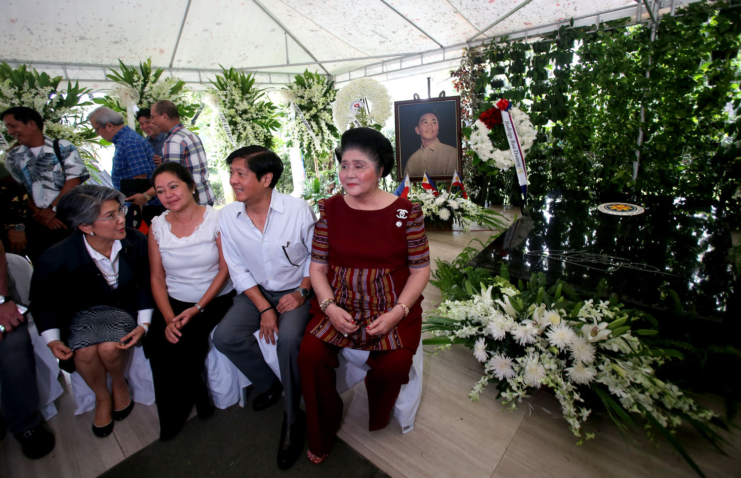 Marcos' children – Ilocos Norte Governor Imee, ex-senator Ferdinand "Bongbong" Jr, and Irene – gave flowers to their father as well.