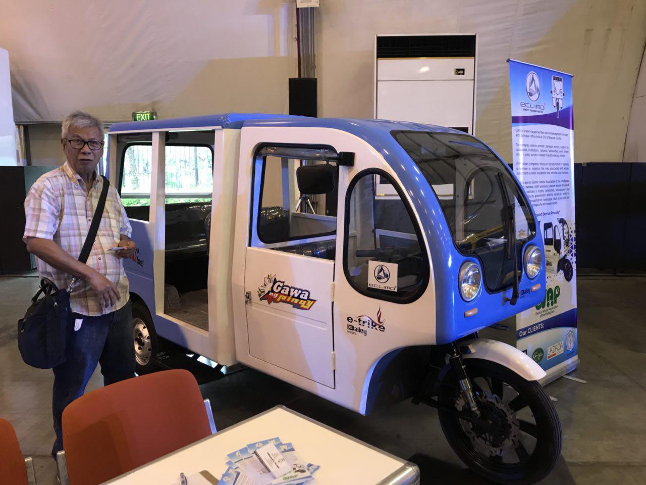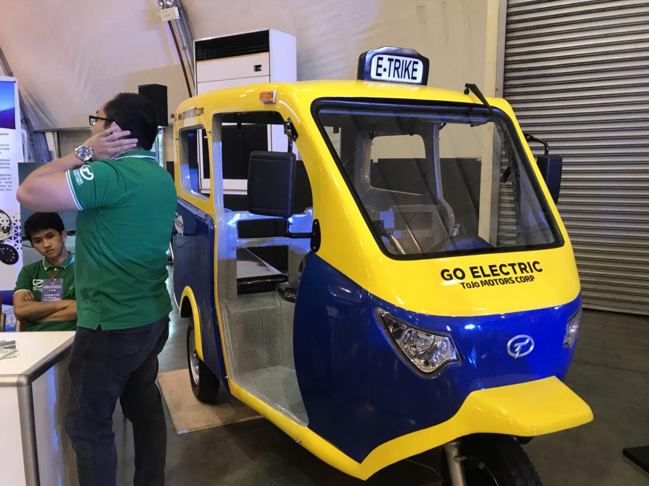 MORE. EVWealth's electric tricycle called E-Trike Bayan can fit up to 6 passengers, more than the average tricycle which can fit 4 passengers.E-TRIKE. Tojo Motors exhibits a 7-seater tricycle powered by a battery.ELECTRIC. Eclimo Motors showcases a battery-powered tricycle at the expo.