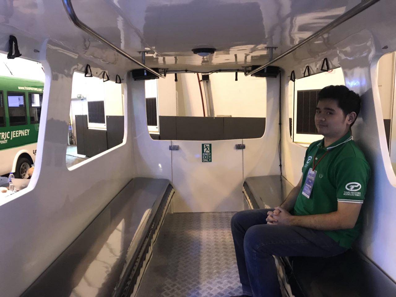 CLASS 1. Tojo Motors, a Filipino automotive manufacturing company, showcases its e-jeepney categorized as a Class 1 vehicle.SEATING. The prototype can carry up to 22 passengers, facing one another.