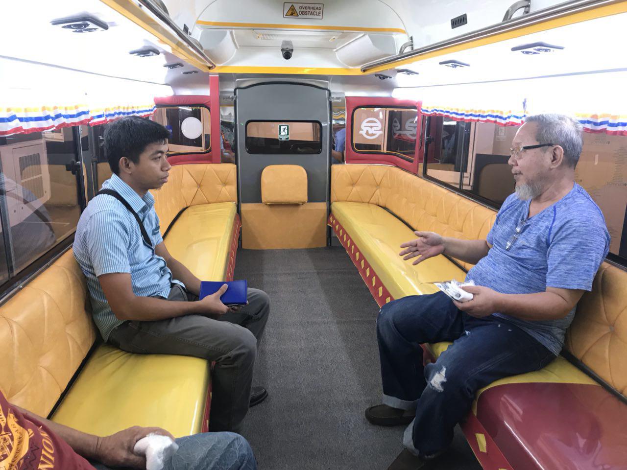 PREMIUM. Mercedes-Benz Philippines shows a prototype equivalent to premium point-to-point buses.INSIDE. The Mercedes-Benz model can accommodate 42 seated passengers.TWO DOORS. The prototype has two doors – one for the entrance and another for the exit – with a button to signal whether a passenger will get off at a stop.MINIBUS. The Mercedes-Benz minibus model can accommodate only 32 passengers.CARGO. Unlike the P2P model, the Mercedes-Benz minibus prototype has space for cargo.RIGHT. The Volvo bus prototype has its entrance on the right side of the vehicle.