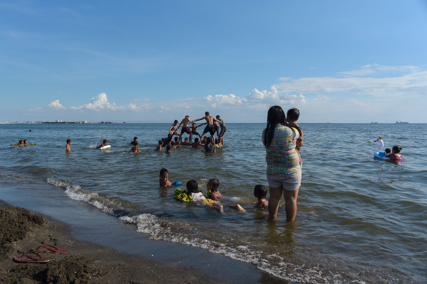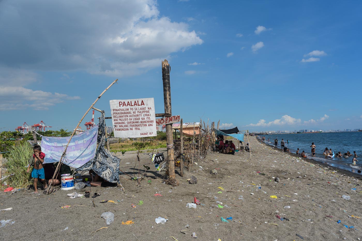 During weekends or if weather permits, Metro Manila’s urban poor flock to their version of “Boracay” beach – a strip of sand at the stalled Baseco Reclamation Expansion Project. People of all ages, take a dip in the murky waters, unaware of the health risks of swimming in the polluted water.