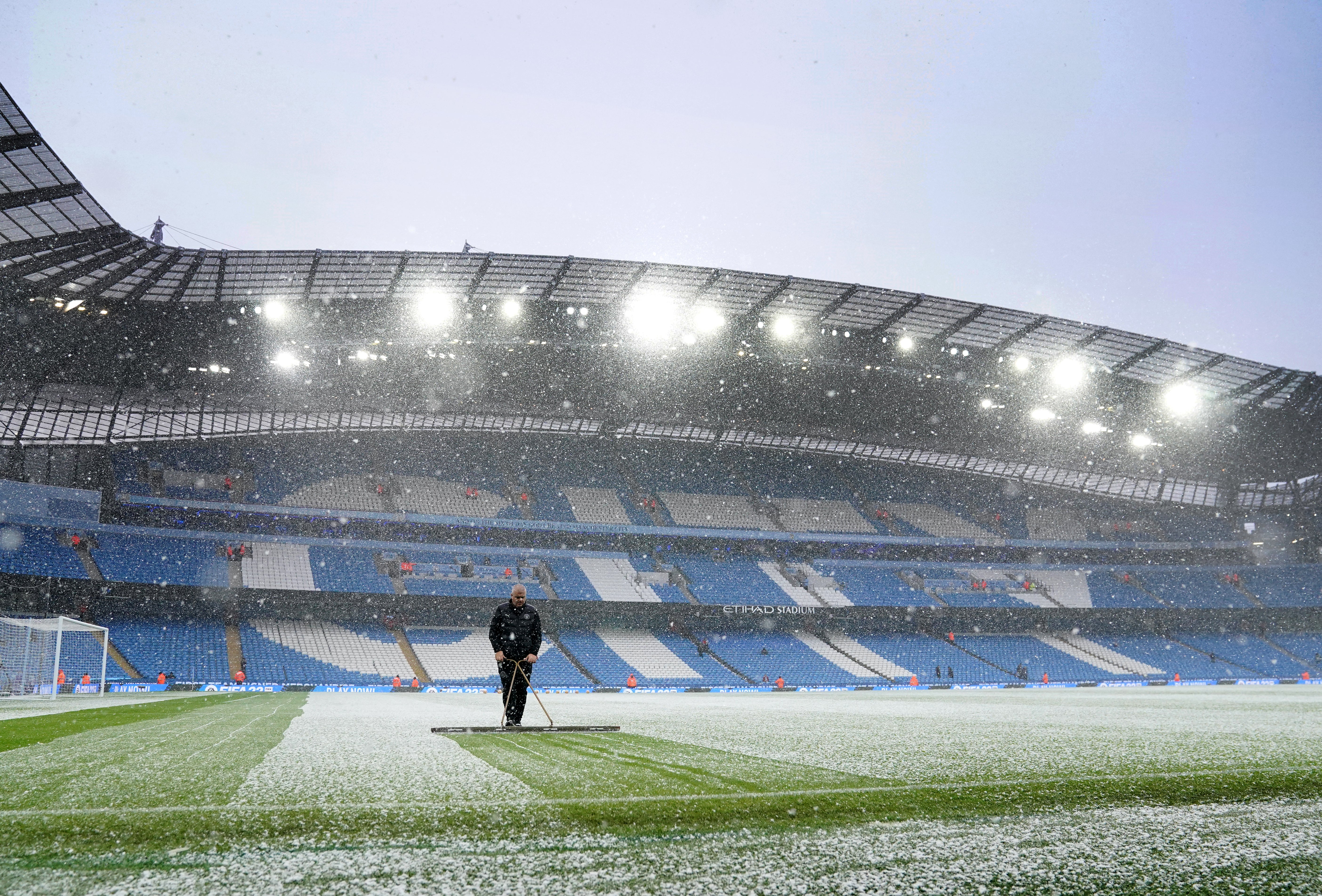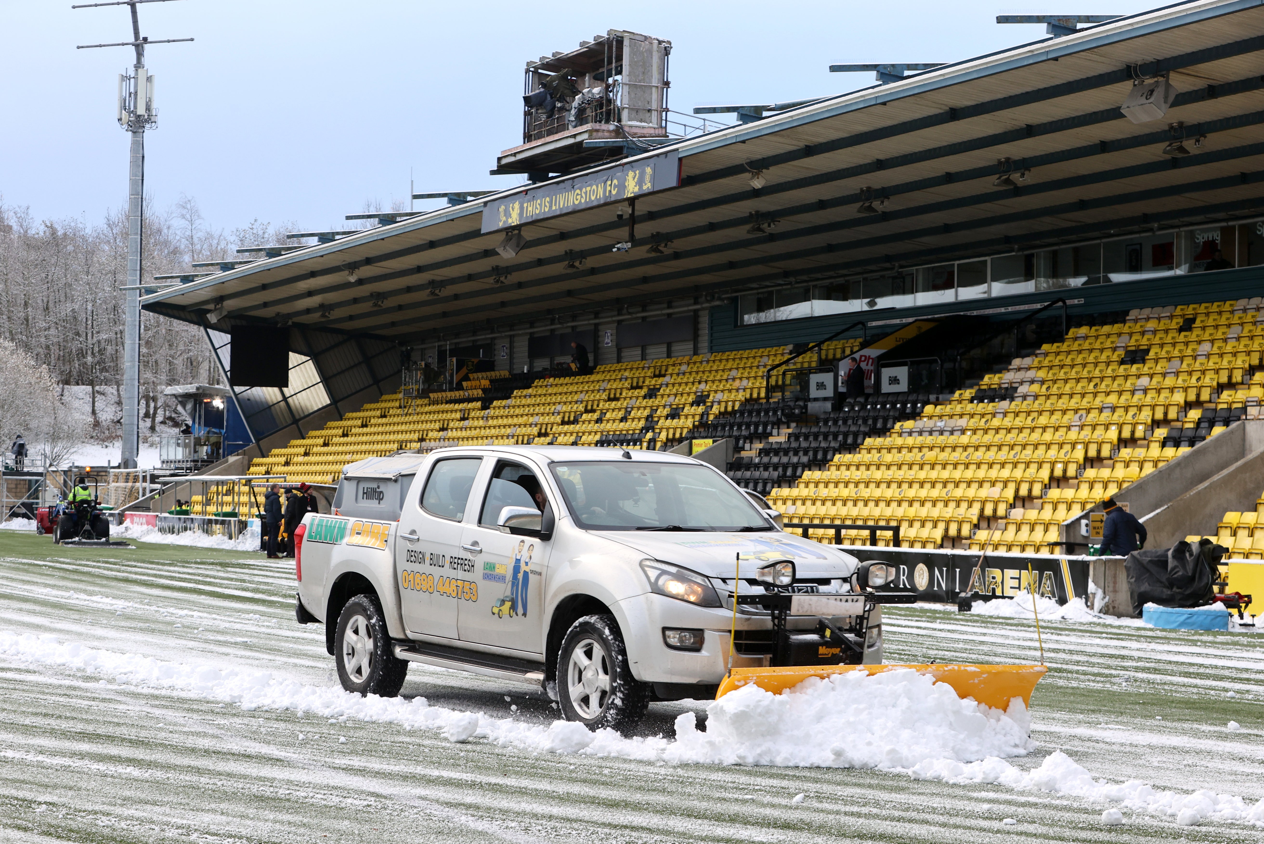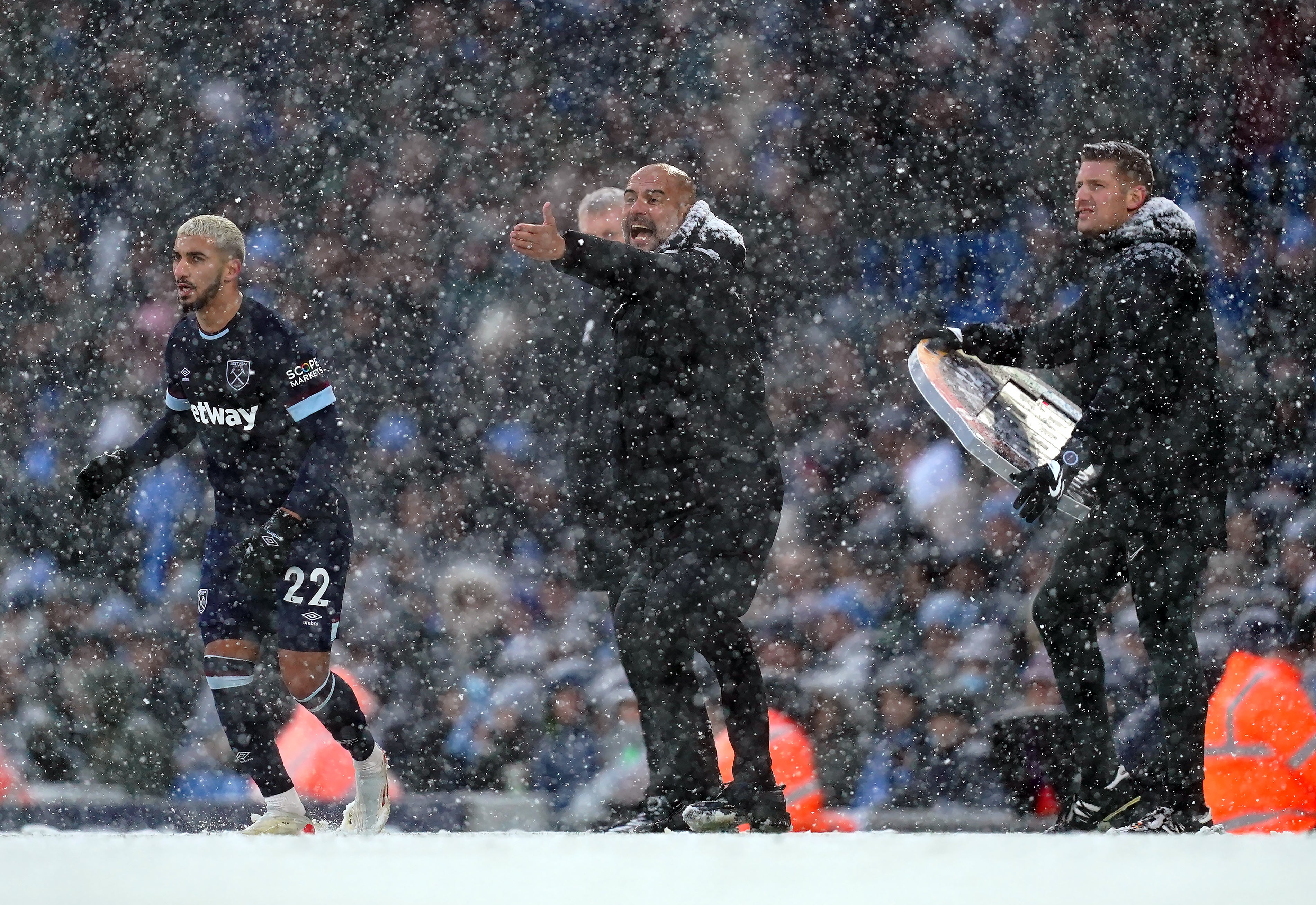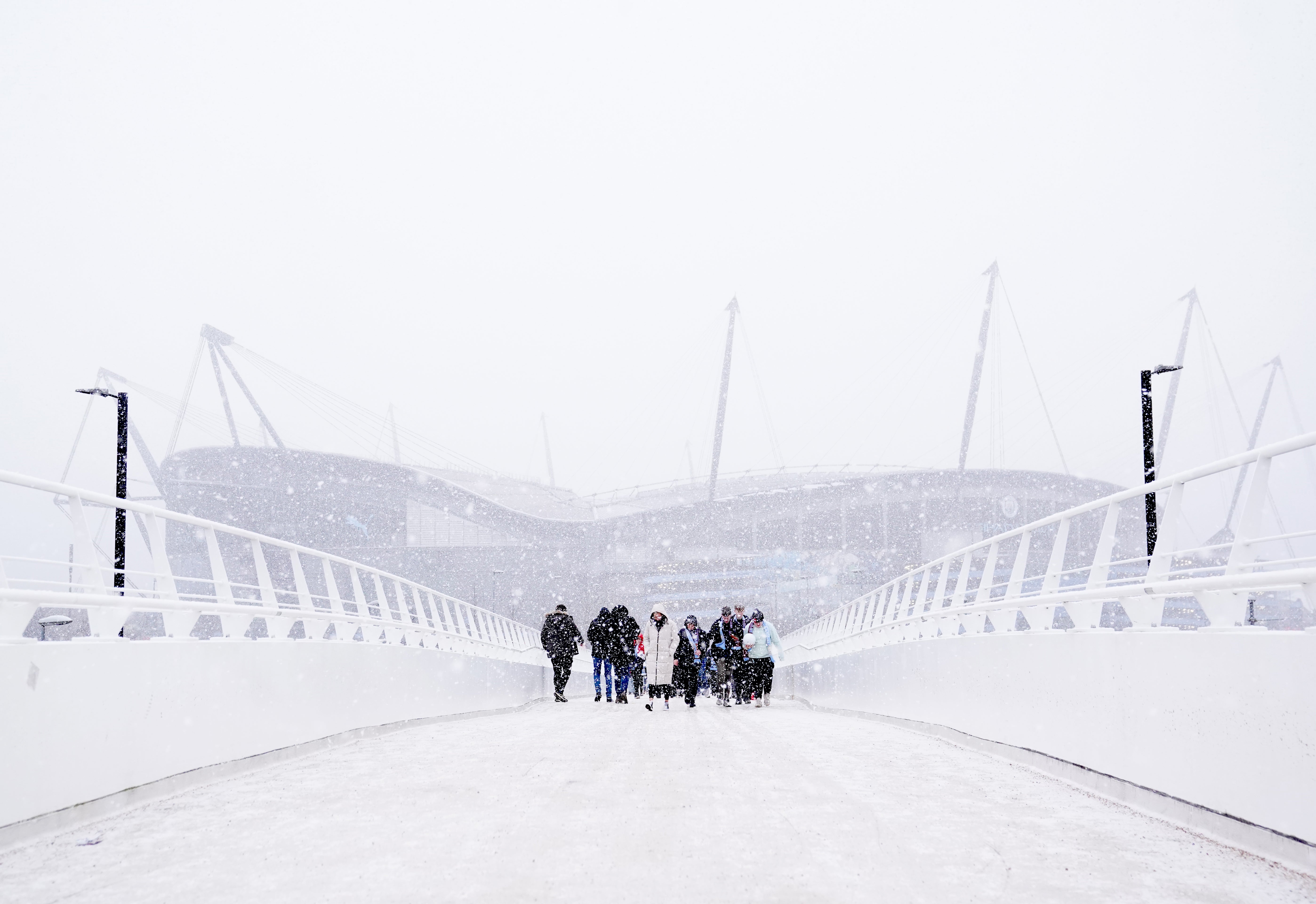 The conditions also delayed the second-half kick-offs at Manchester City while the lines were cleared and at Livingston as Rangers fans threw snowballs at home goalkeeper Max Stryjek.