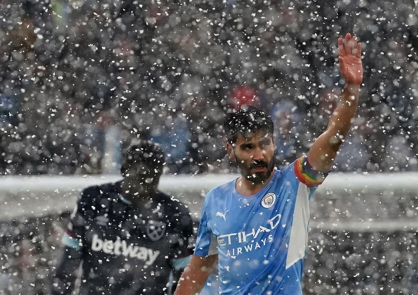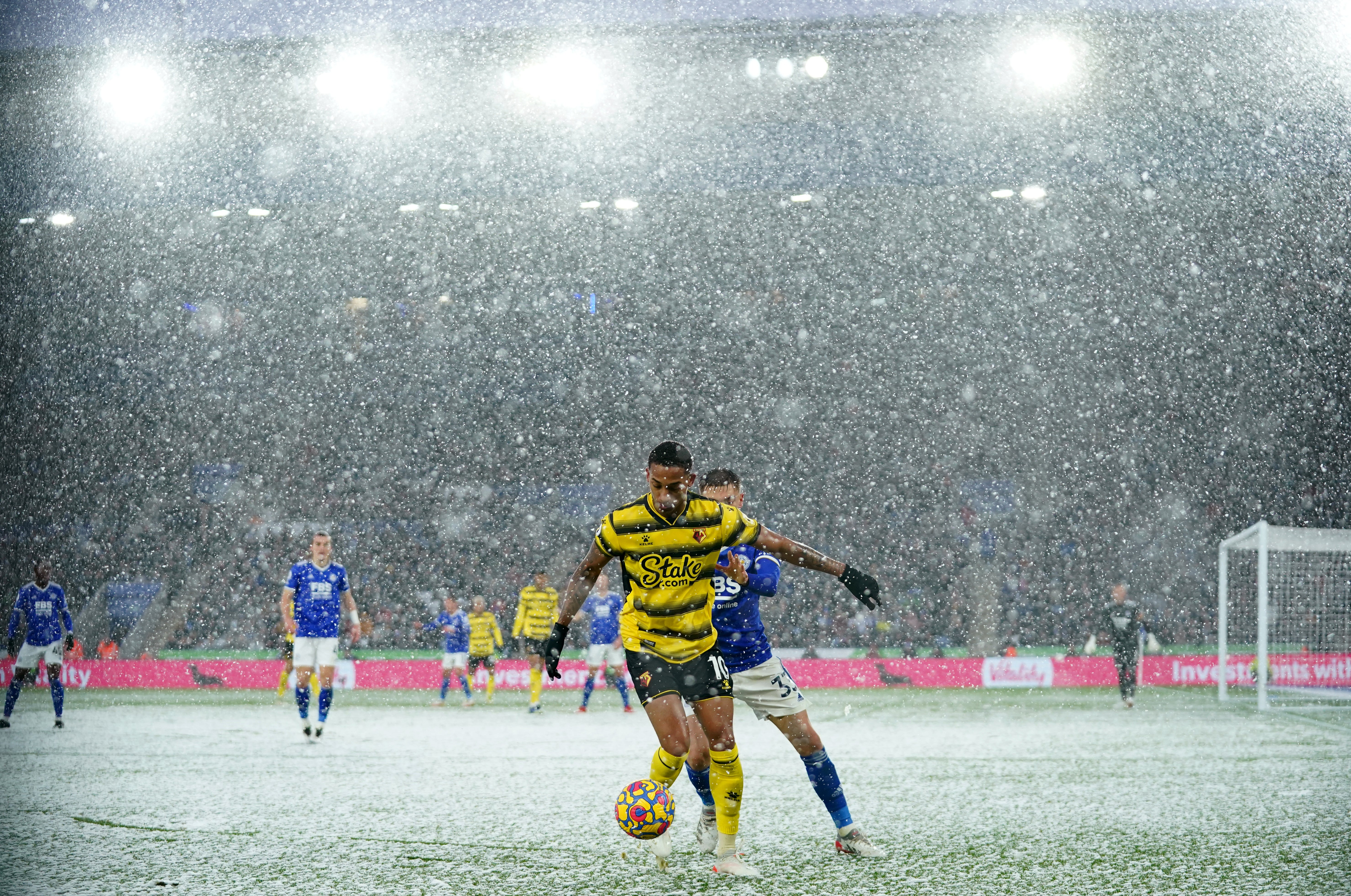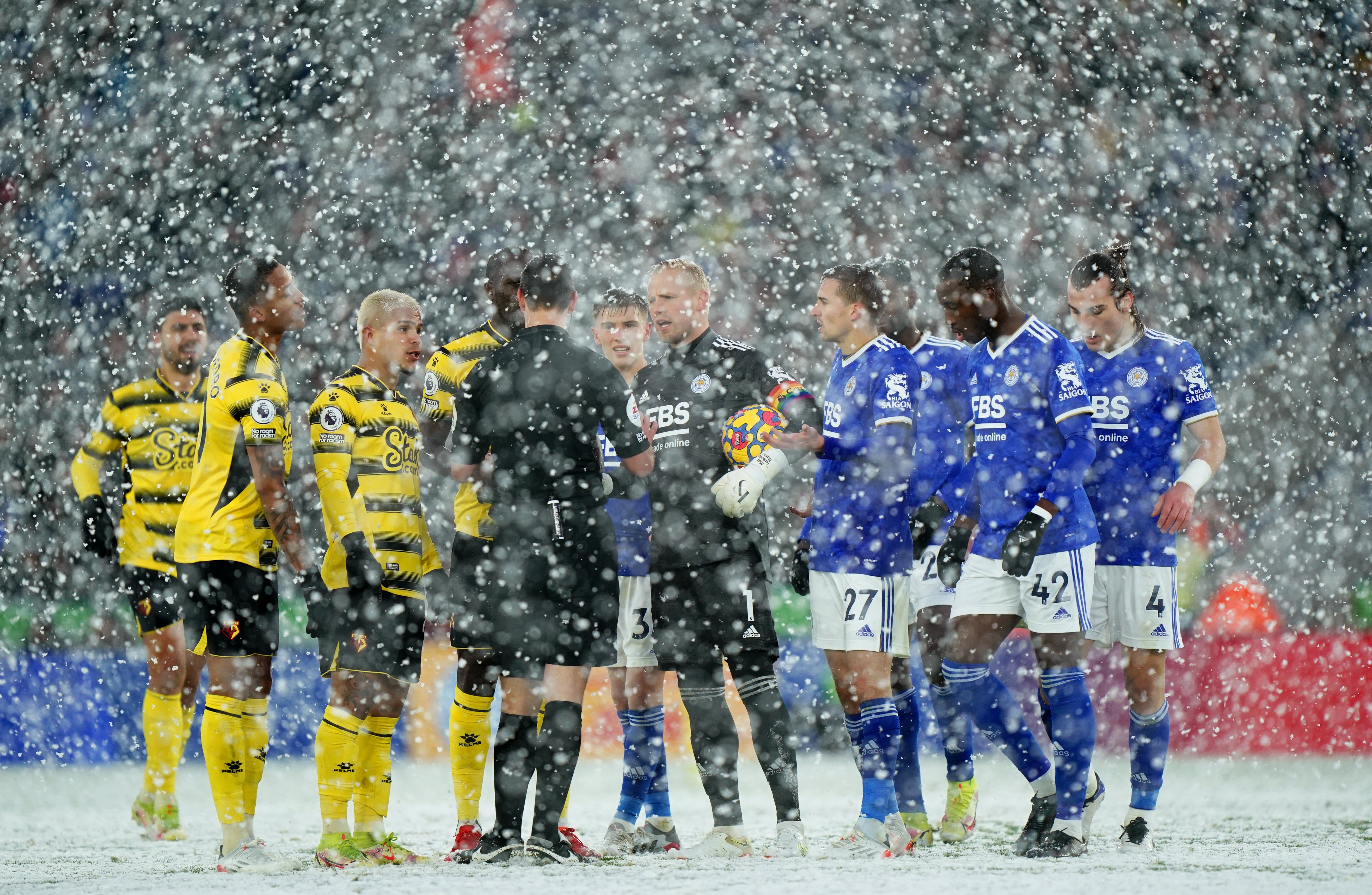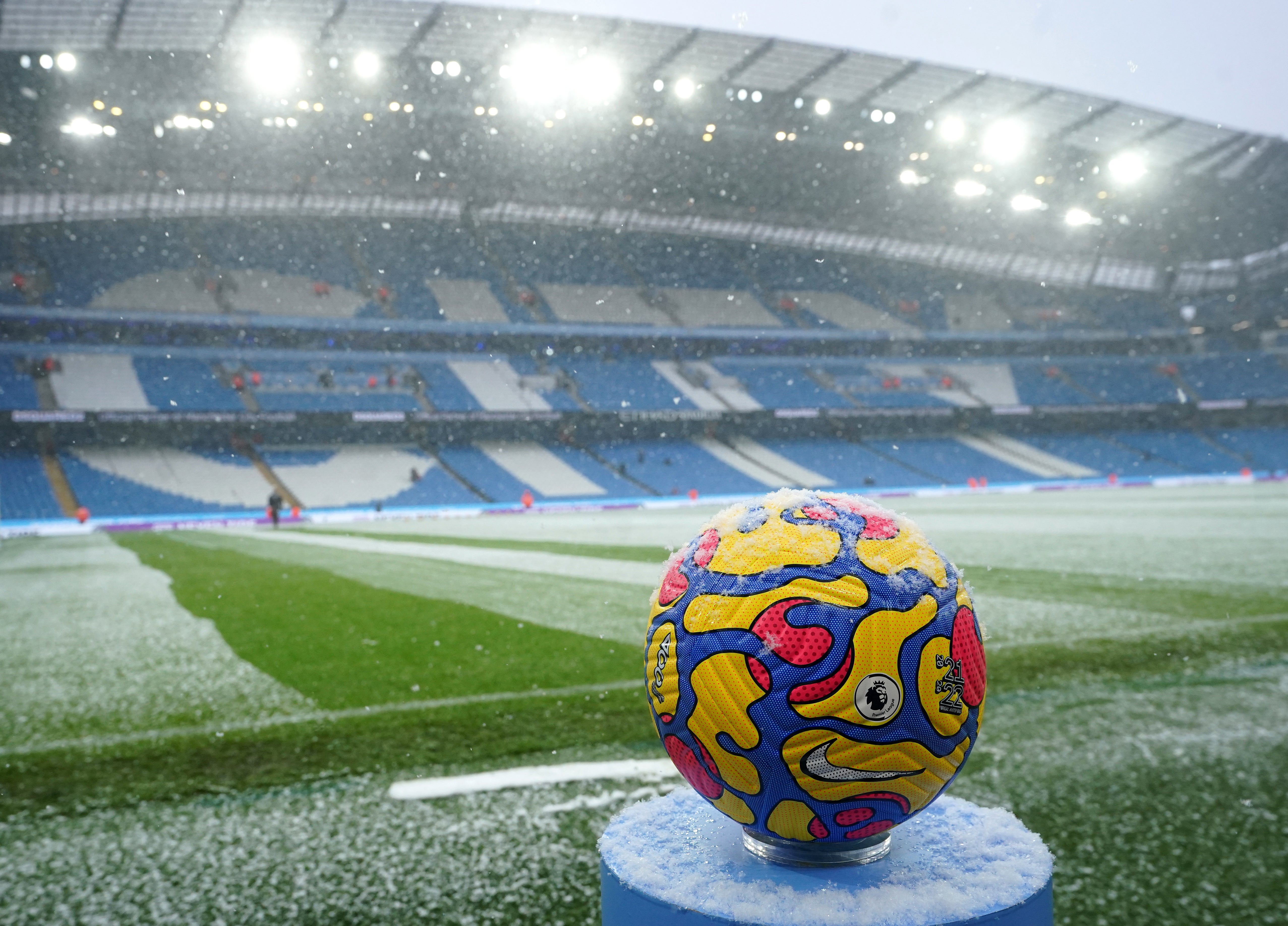The conditions also delayed the second-half kick-offs at Manchester City while the lines were cleared and at Livingston as Rangers fans threw snowballs at home goalkeeper Max Stryjek.