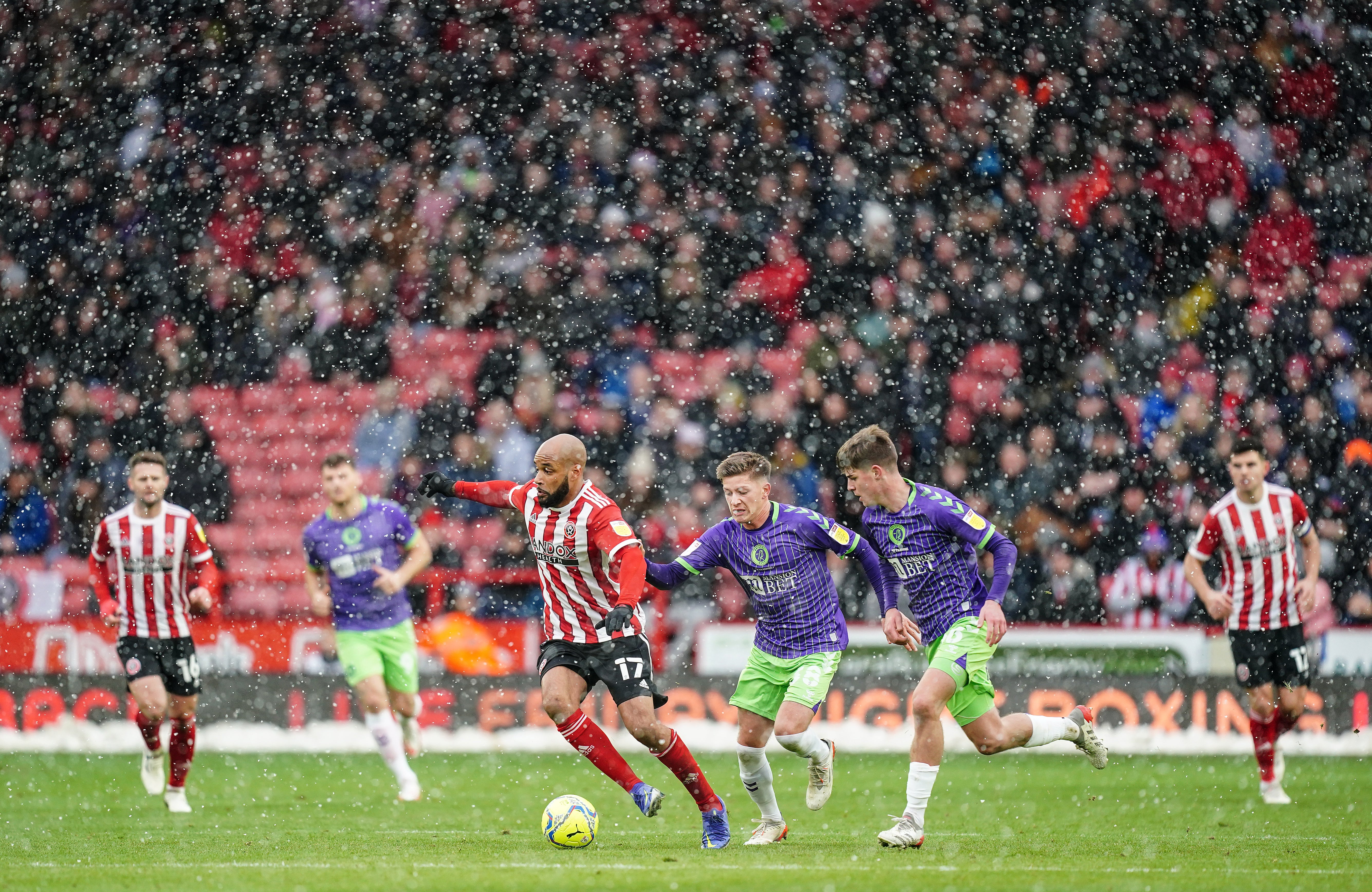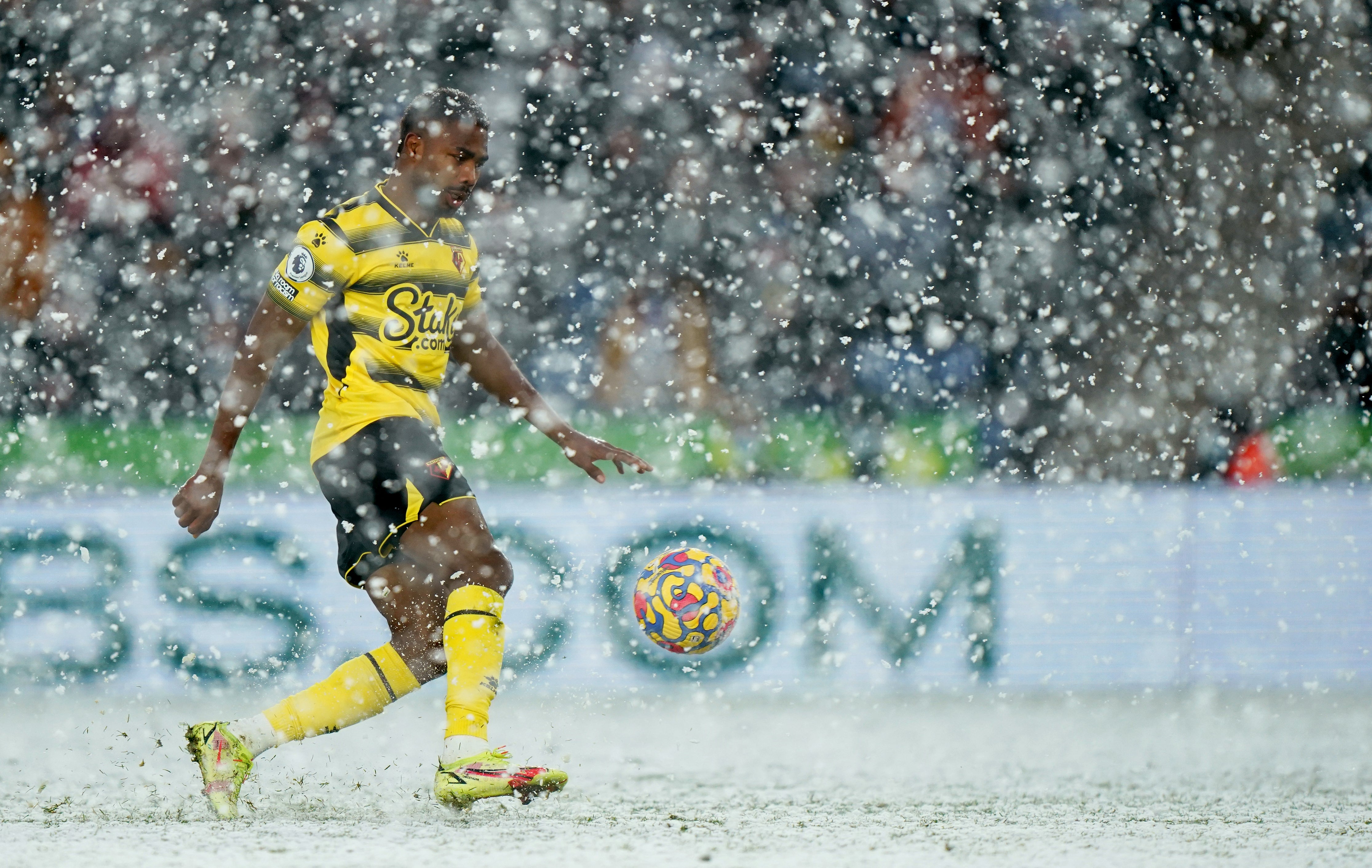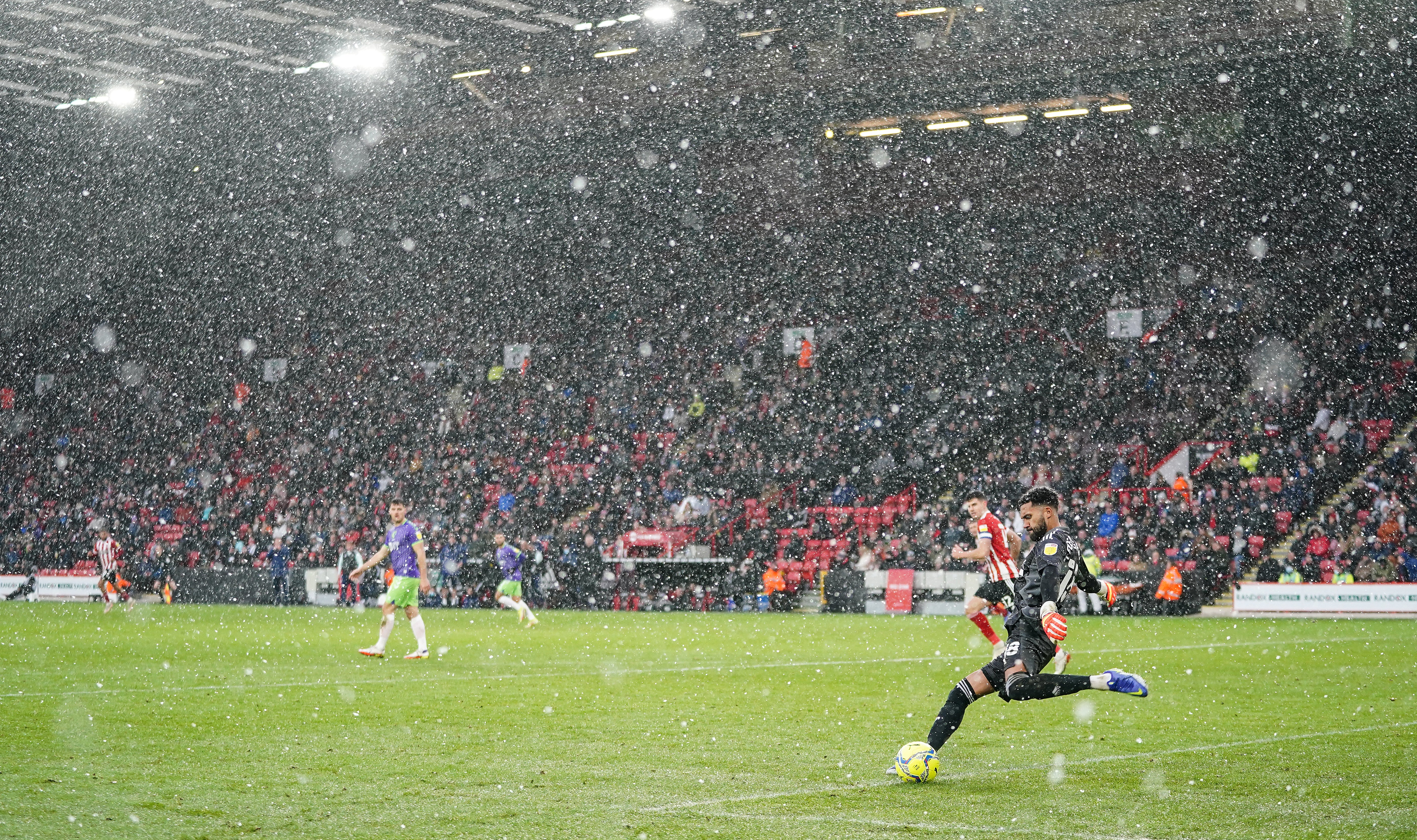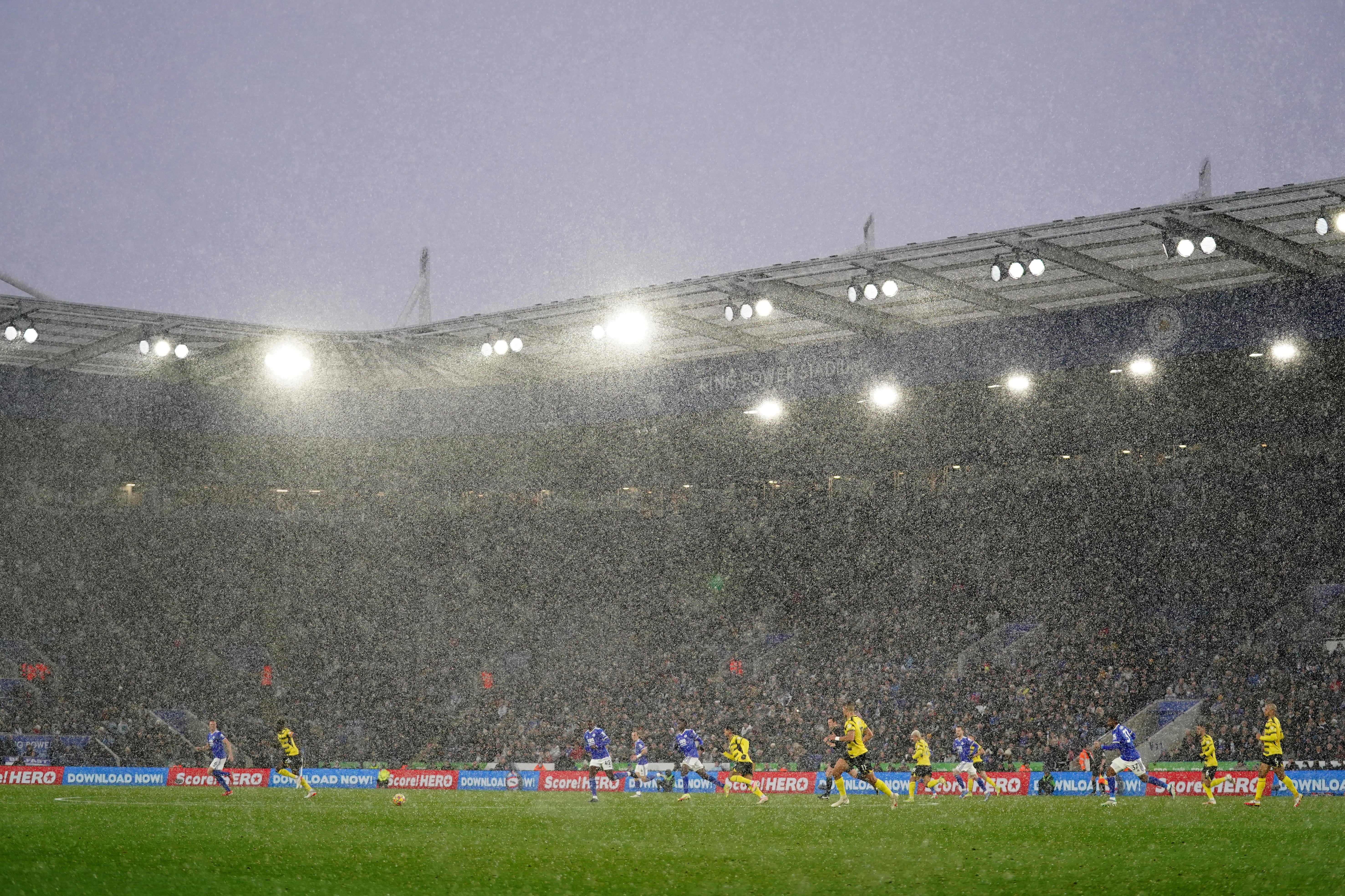 The conditions also delayed the second-half kick-offs at Manchester City while the lines were cleared and at Livingston as Rangers fans threw snowballs at home goalkeeper Max Stryjek.