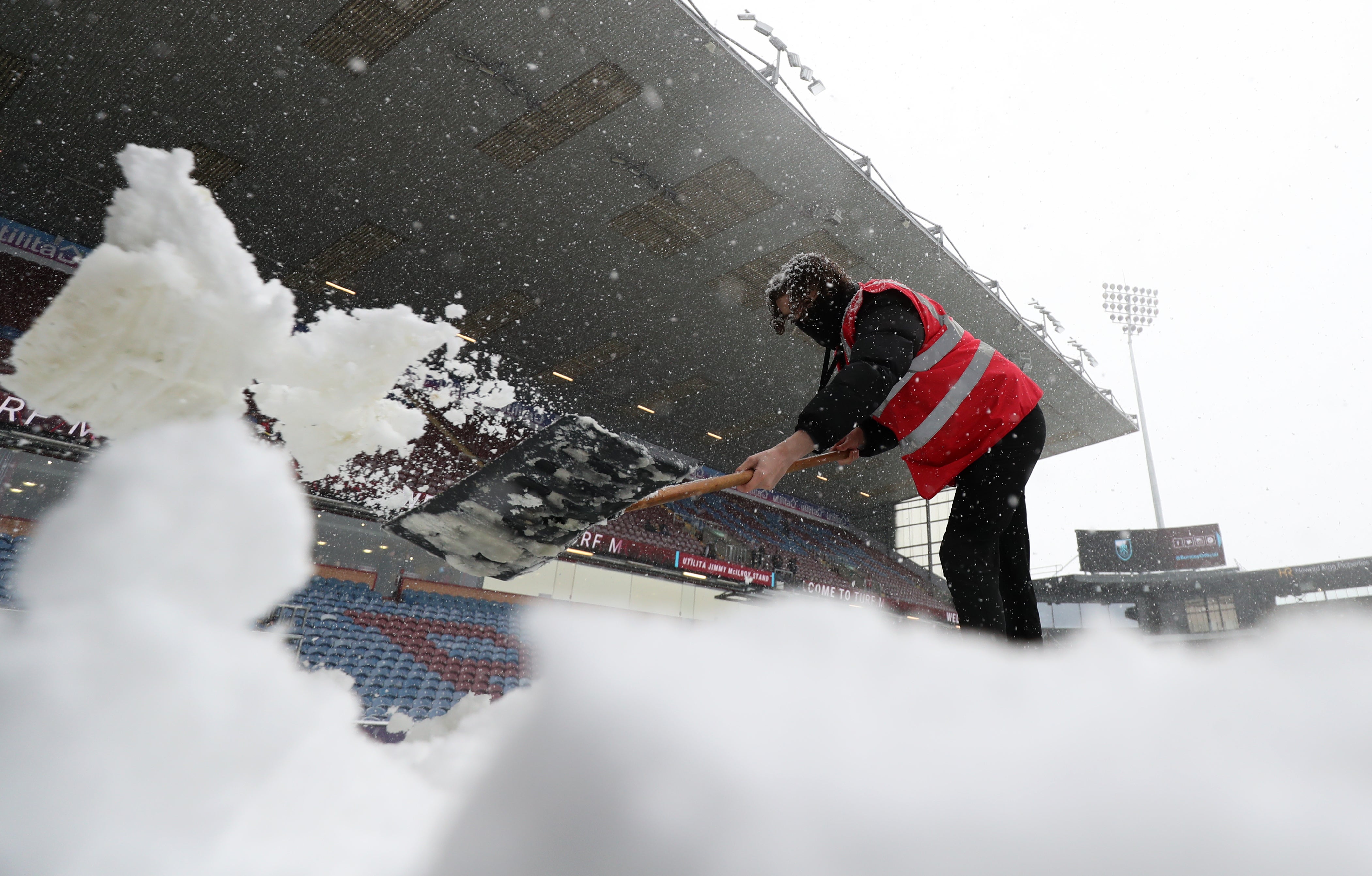 Burnley’s Premier League clash with Tottenham was postponed and other games went ahead in the snow as the weather continued to make its presence felt on Sunday.