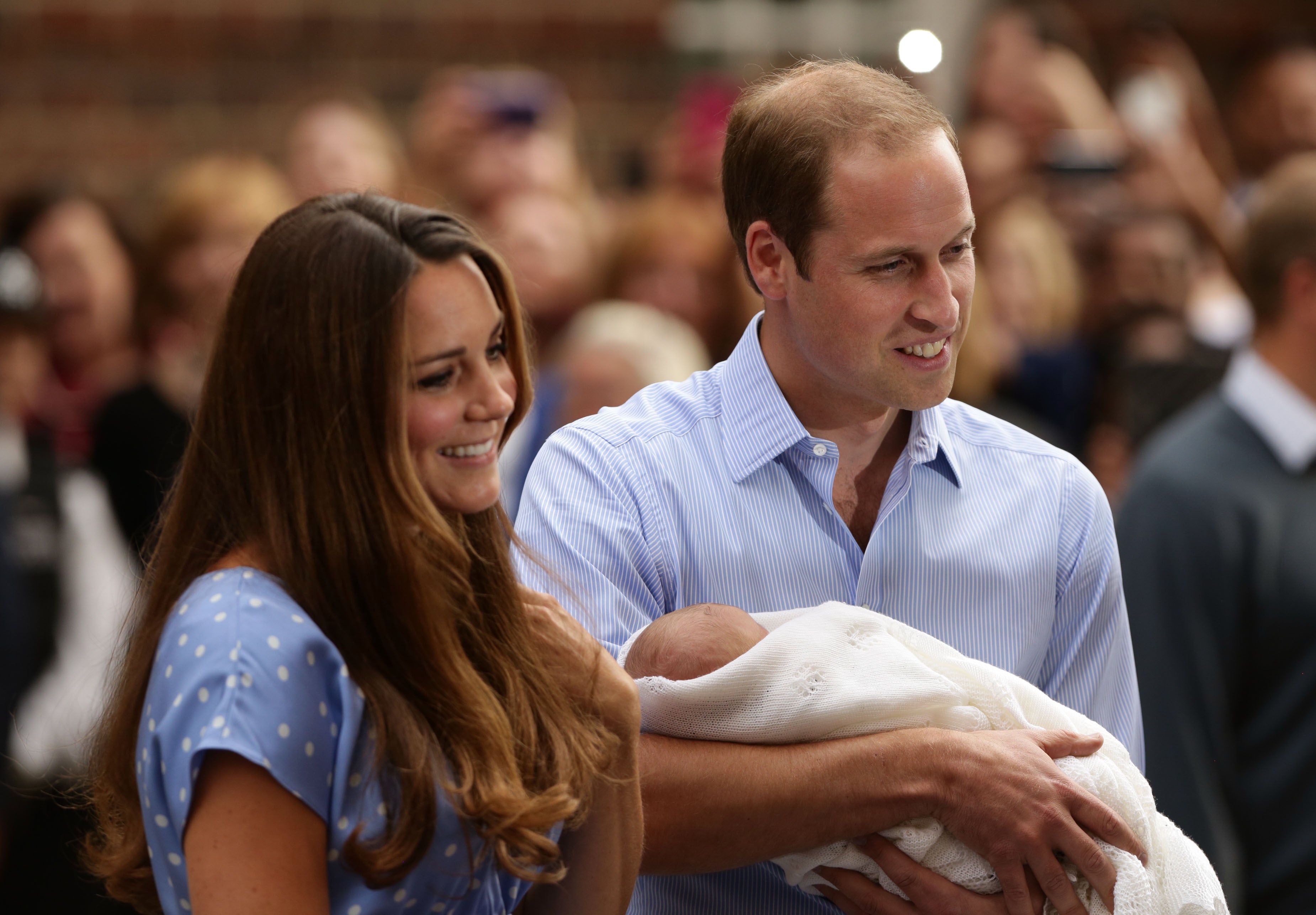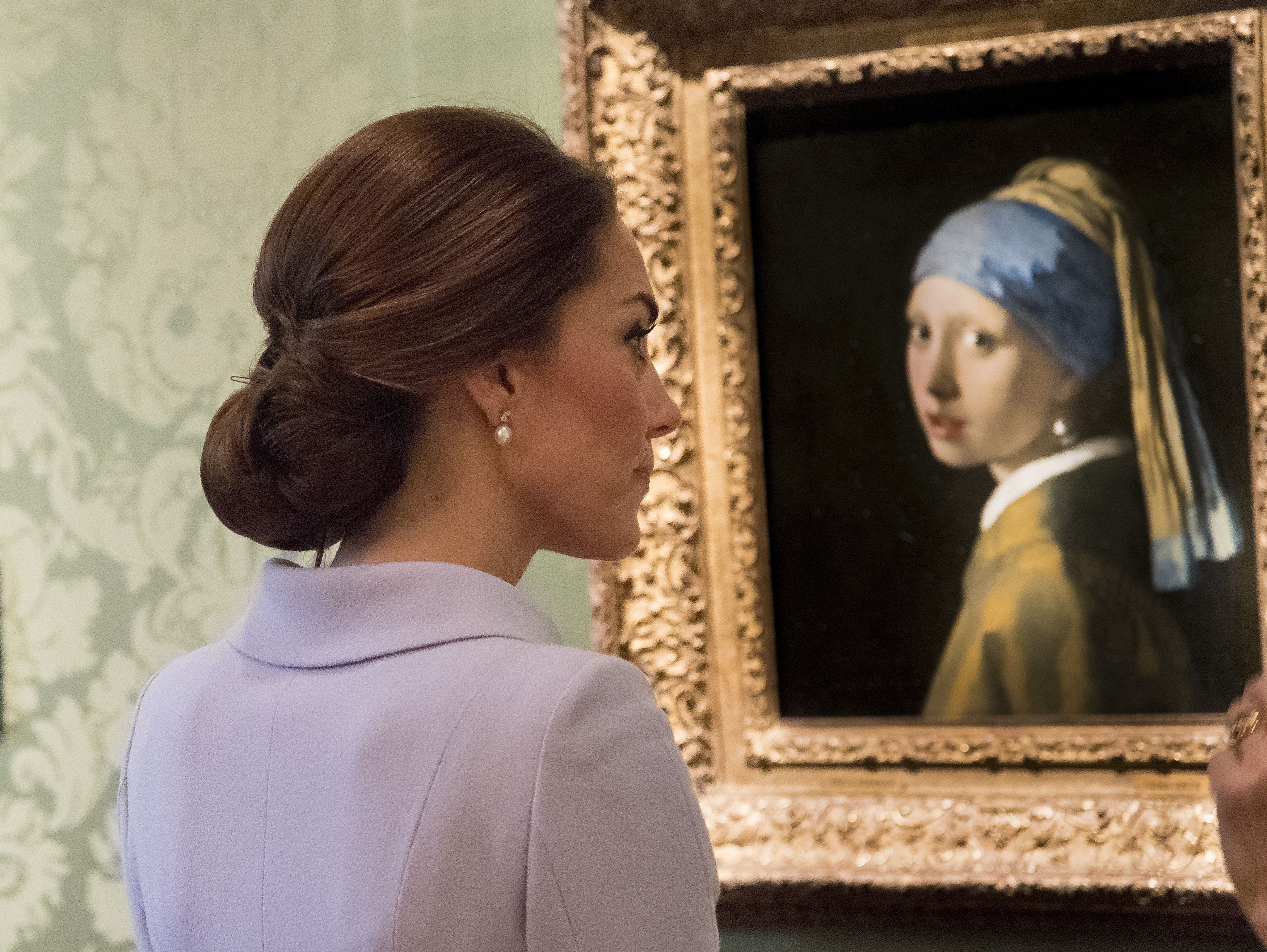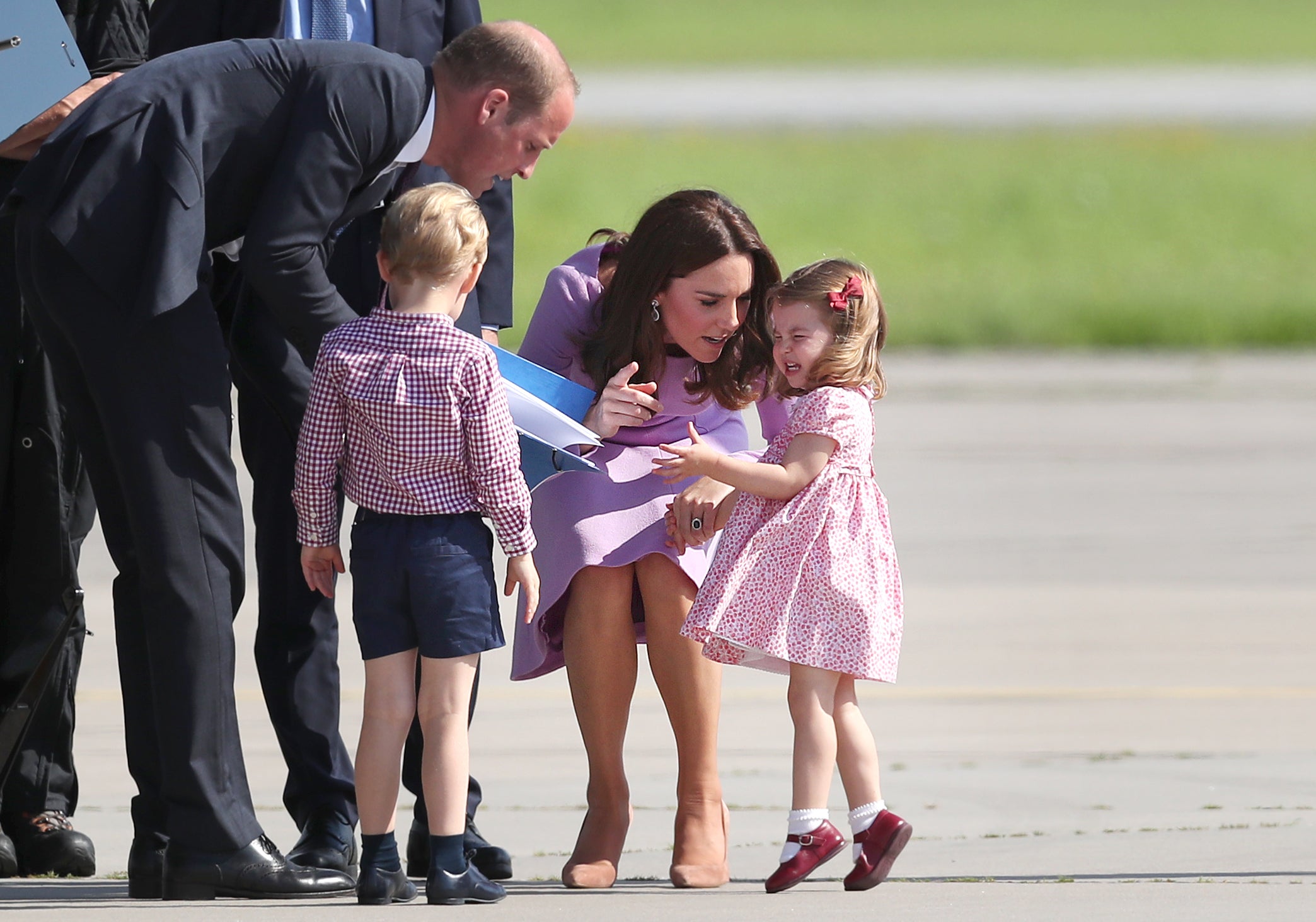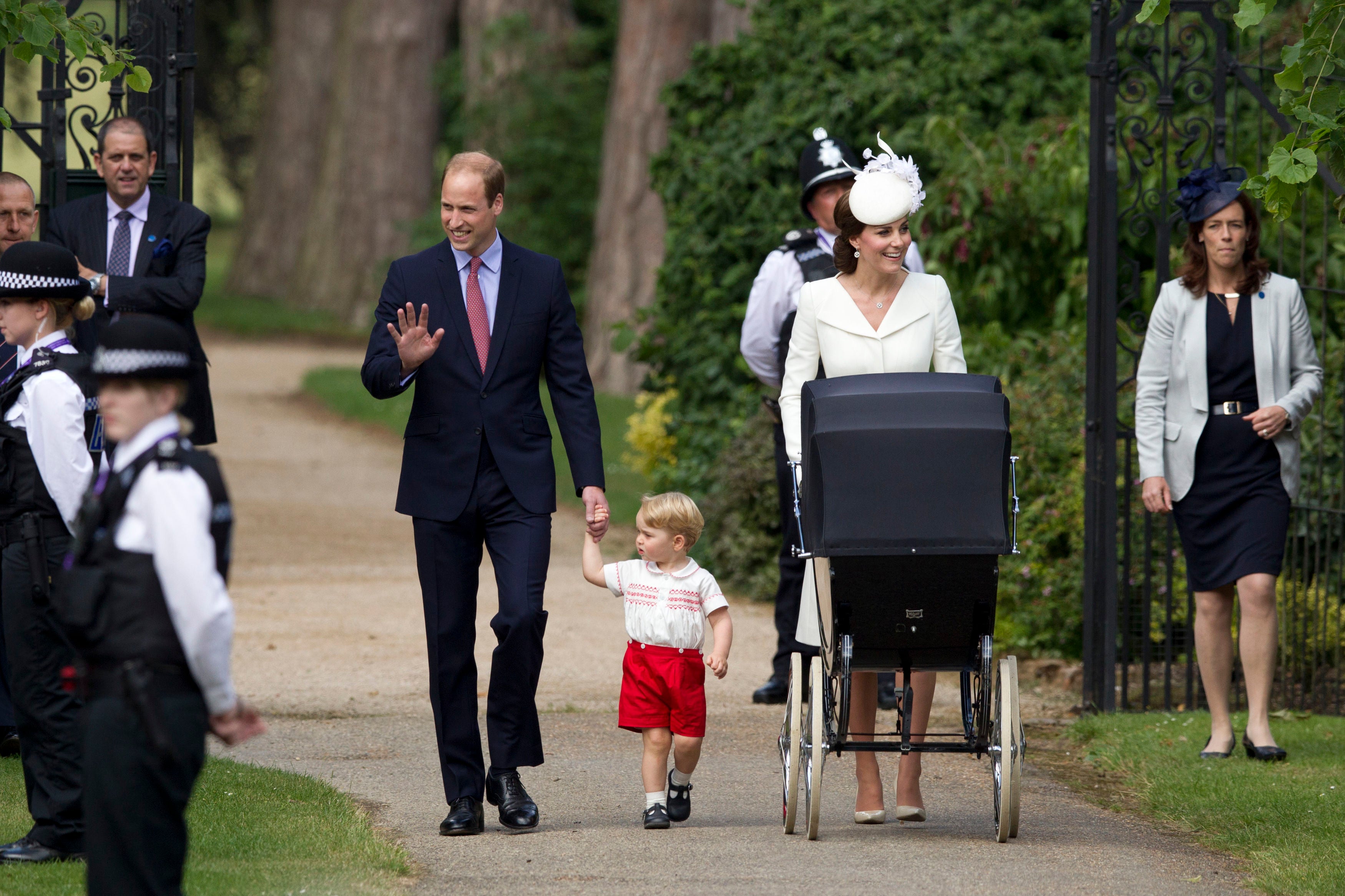 The Duke and Duchess of Cambridge with Prince George and Princess Charlotte in a vintage pram, as they arrive for Charlotte’s christening (Matt Dunham/PA) (PA Archive)The Cambridges, George and two-year-old Charlotte, who was having a tantrum, at Hamburg Airport during the family’s three-day tour of Germany (Jane Barlow/PA) (PA Archive)The duchess views Vermeer’s painting Girl with a Pearl Earring during her solo trip to the Netherlands (Arthur Edwards/The Sun/PA) (PA Wire)