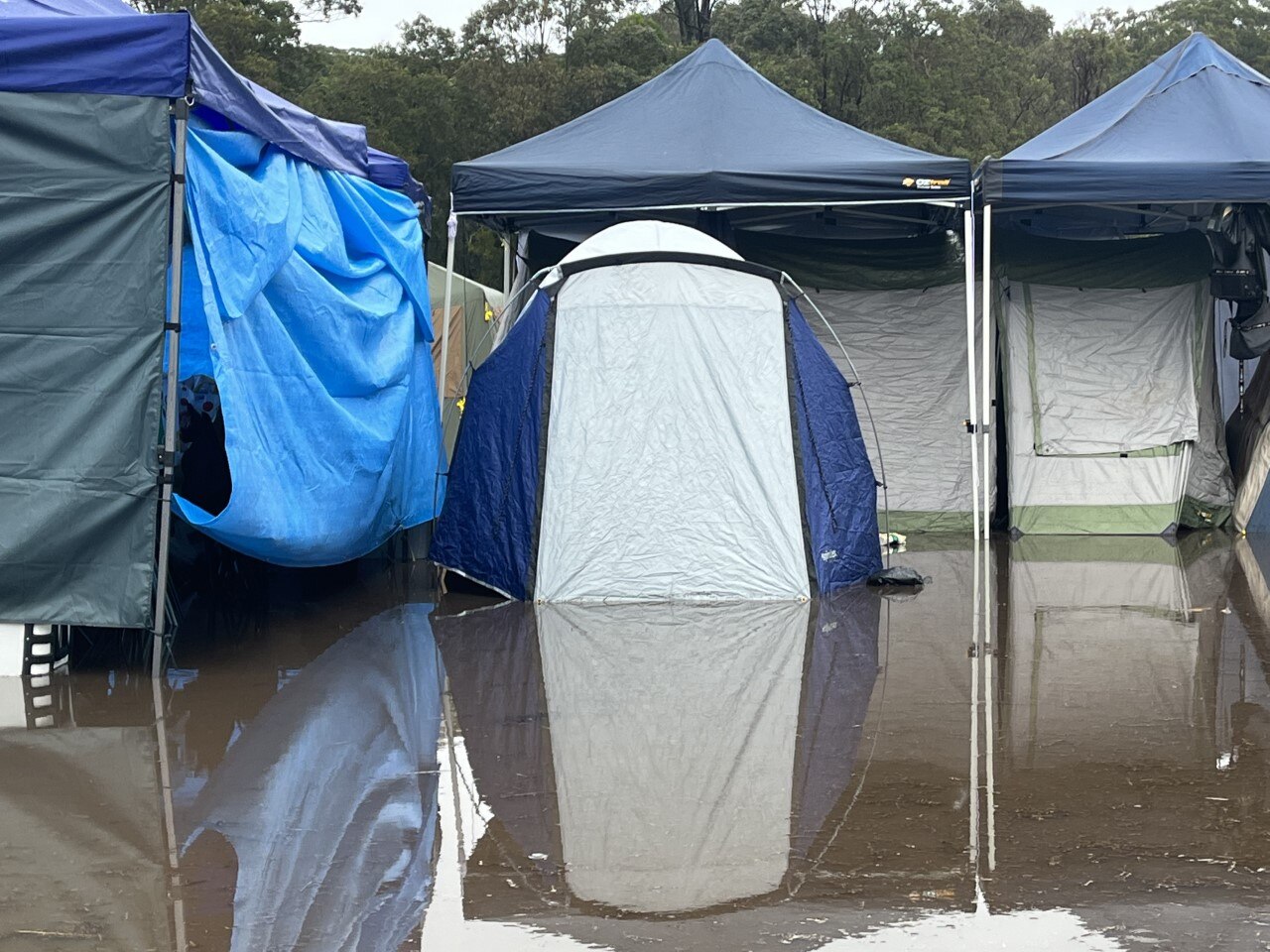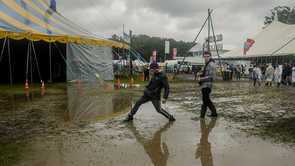 Conditions were considerably worse on Friday, with organisers cancelling the main stage acts due to wet weather.