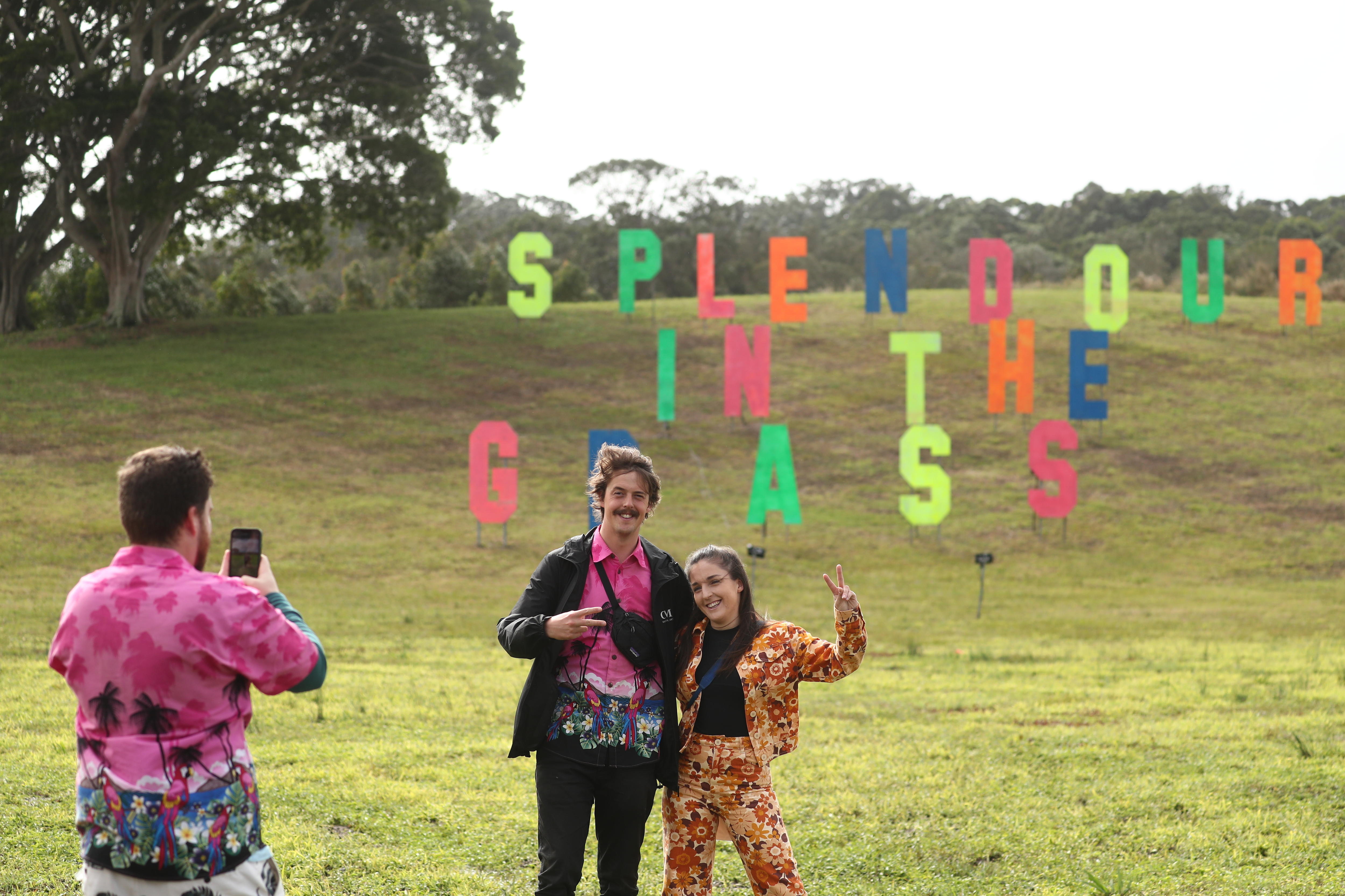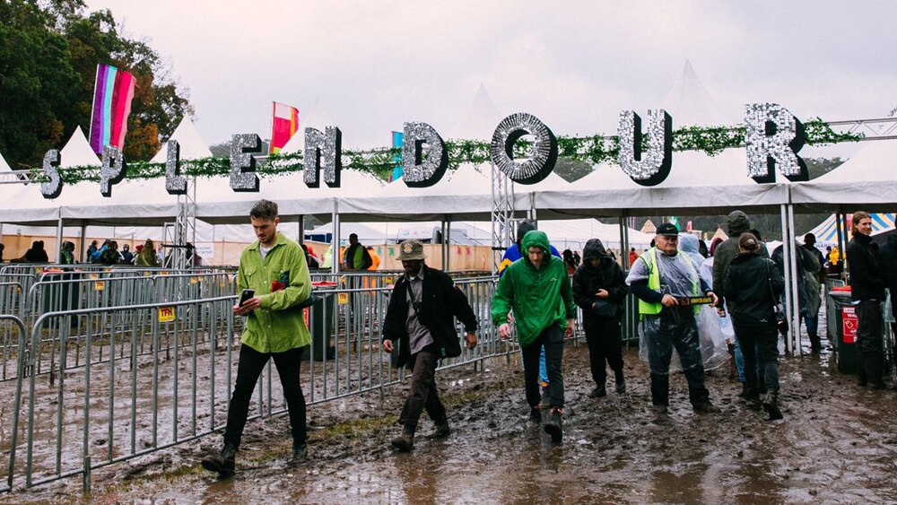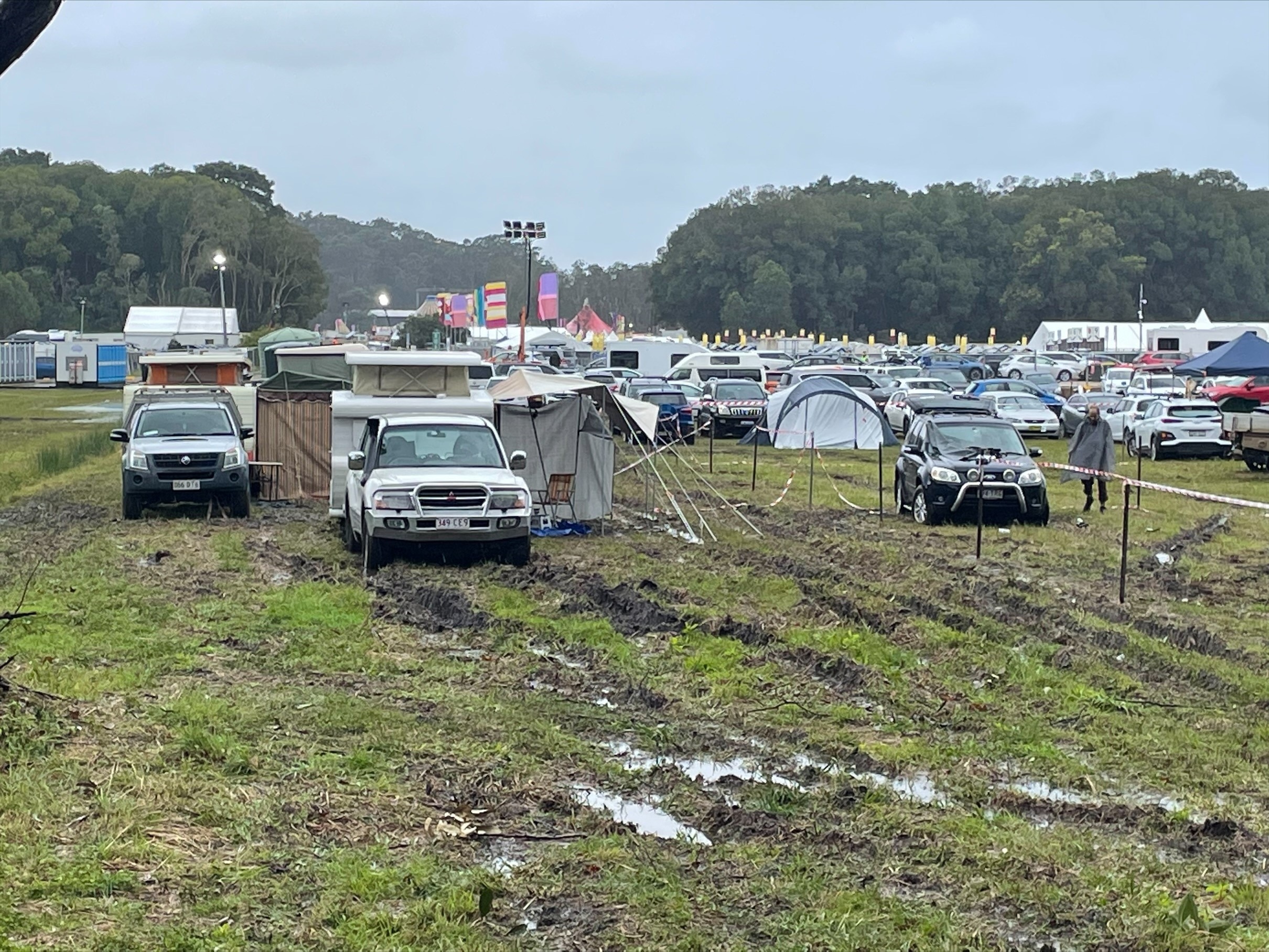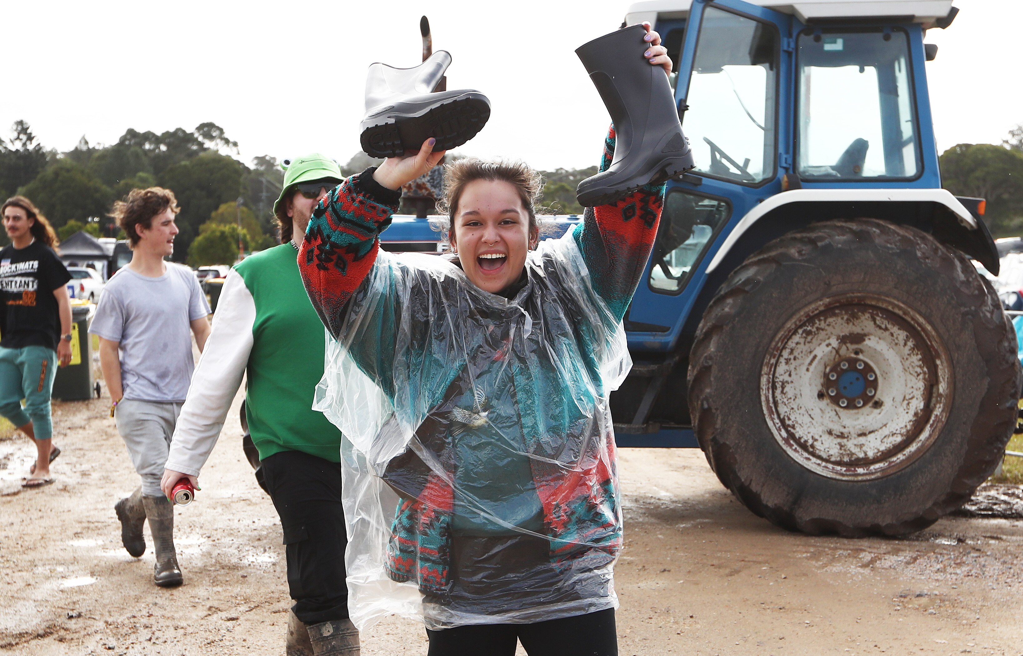 Revellers are braving the muddy conditions as they file in for the second day of the Splendour in the Grass festival at the North Byron Parklands.
