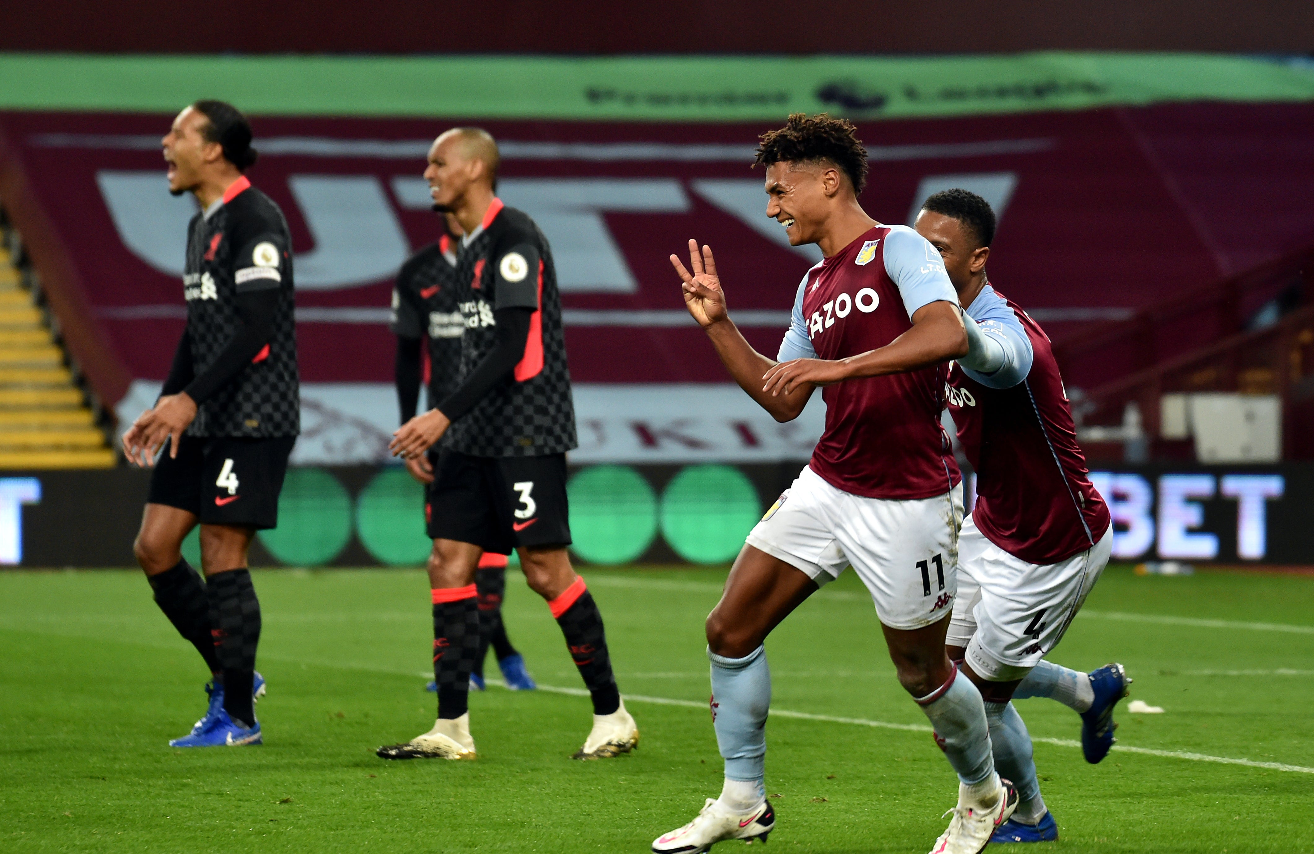 Aston Villa striker Ollie Watkins celebrates completing his hat-trick during a remarkable 7-2 demolition of defending champions Liverpool in October. The astonishing scoreline was the initial dent in a title defence which failed to materialise and was the first time the stunned Reds had conceded seven goals in Premier League history. Goals from Ross Barkley and John McGinn, plus a Jack Grealish brace, completed the scoring as Dean Smith’s hosts ran wild (PA Archive)