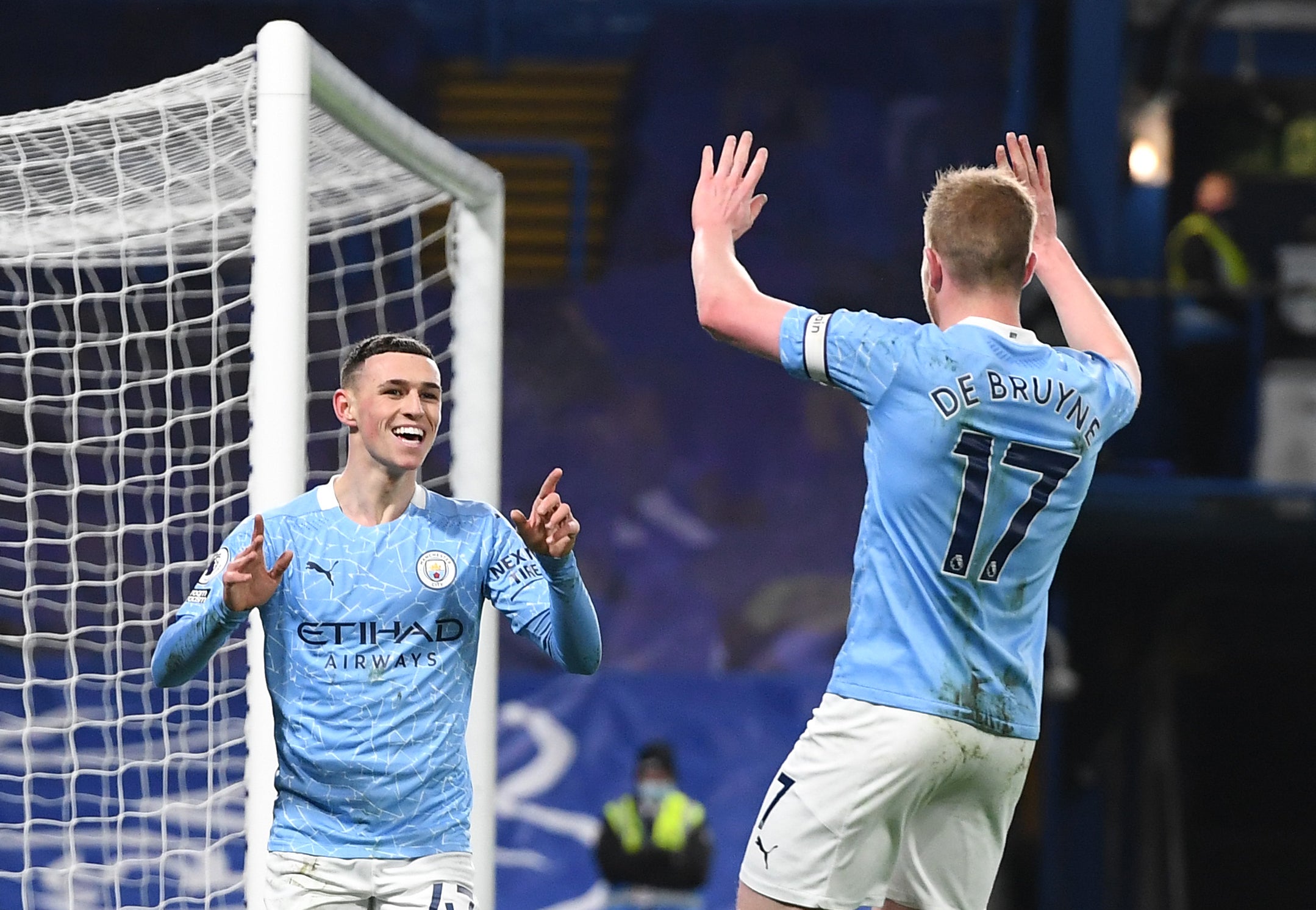Phil Foden, left, celebrates with Kevin De Bruyne after scoring in a 3-1 win at Chelsea in early January. After a slow start to the season, City comfortably regained the Premier League title from Liverpool. De Bruyne was once again instrumental in the success of Pep Guardiola's side, while fellow creative midfielder Foden underlined his status as arguably England's brightest prospect with a string of standout performances across the campaign (PA Wire)