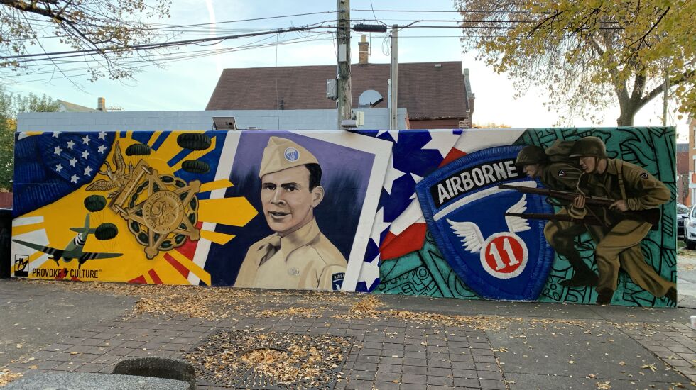 Last November, Maciel was chosen by the Foundation of Little Village to paint a mural of Manuel Perez Jr. — an Army paratrooper during World War II who lived near and worked in Little Village — for the plaza bearing his name at 4345 W. 26th St.