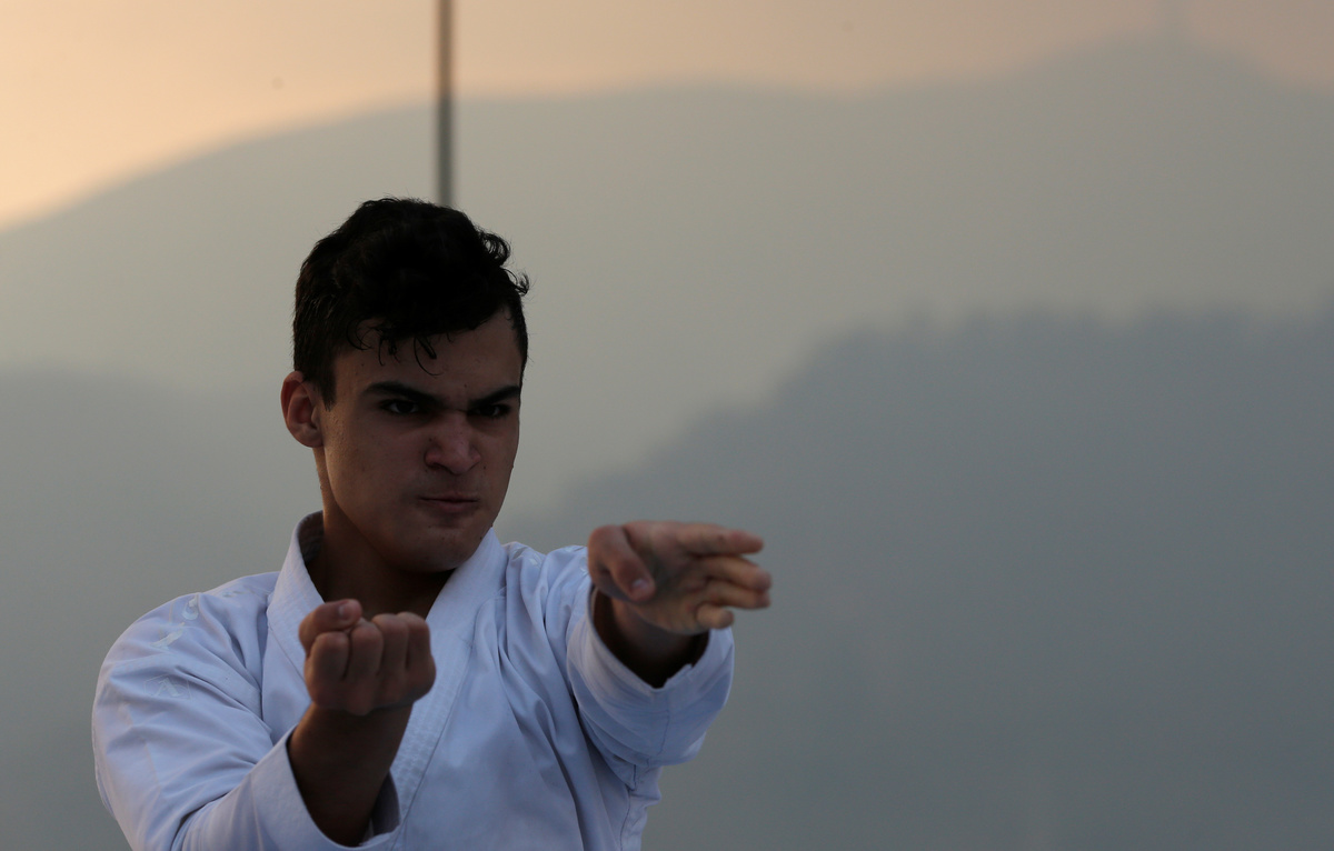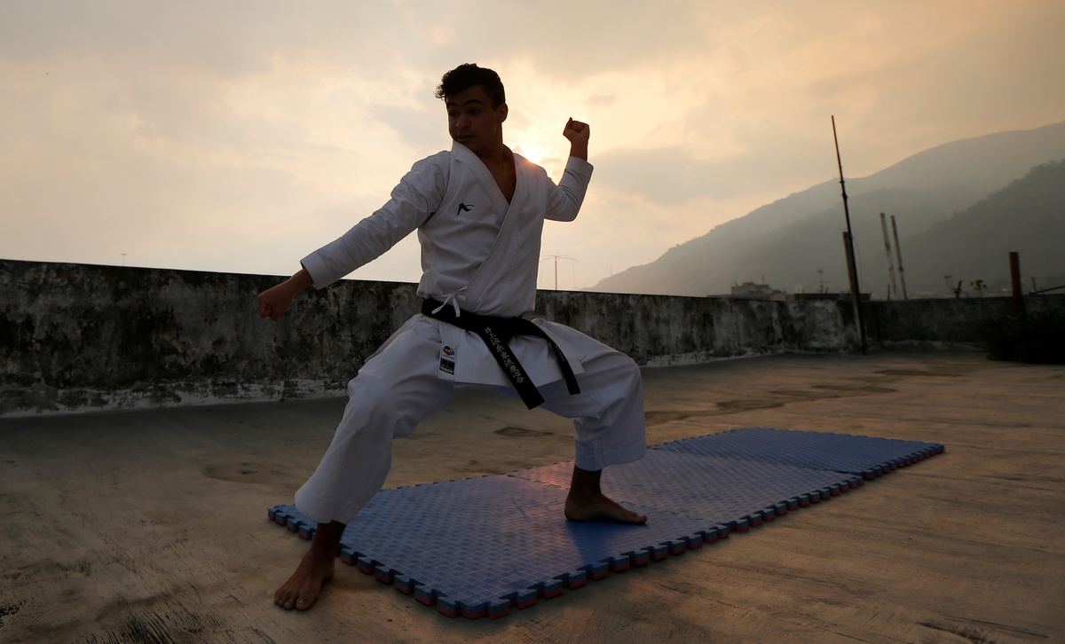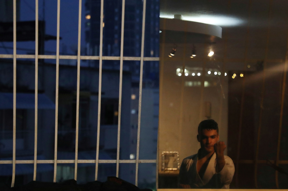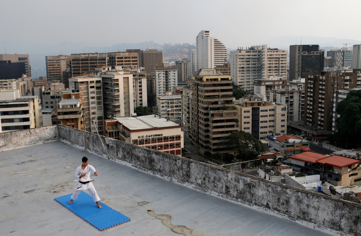 Venezuela team karateka Ricardo Perez during a training session on the rooftop of the building, following the outbreak of the coronavirus disease (COVID-19), Caracas, Venezuela, May 11, 2020. REUTERS/Manaure QuinteroThe reflection in a window of Venezuela team karateka Ricardo Perez during a training session at home, following the outbreak of the coronavirus disease (COVID-19), Caracas, Venezuela, May 8, 2020. REUTERS/Manaure QuinteroVenezuela team karateka Ricardo Perez during a training session on the rooftop of the building, following the outbreak of the coronavirus disease (COVID-19), Caracas, Venezuela, May 11, 2020. REUTERS/Manaure QuinteroVenezuela team karateka Ricardo Perez during a training session on the rooftop of the building, following the outbreak of the coronavirus disease (COVID-19), Caracas, Venezuela, May 11, 2020. REUTERS/Manaure QuinteroVenezuela team karateka Ricardo Perez during a training session at home, following the outbreak of the coronavirus disease (COVID-19), Caracas, Venezuela, May 8, 2020. REUTERS/Manaure Quintero