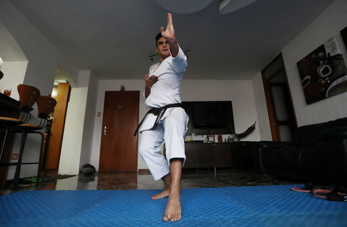 In quarantined Venezuela, karate champion takes training to living room