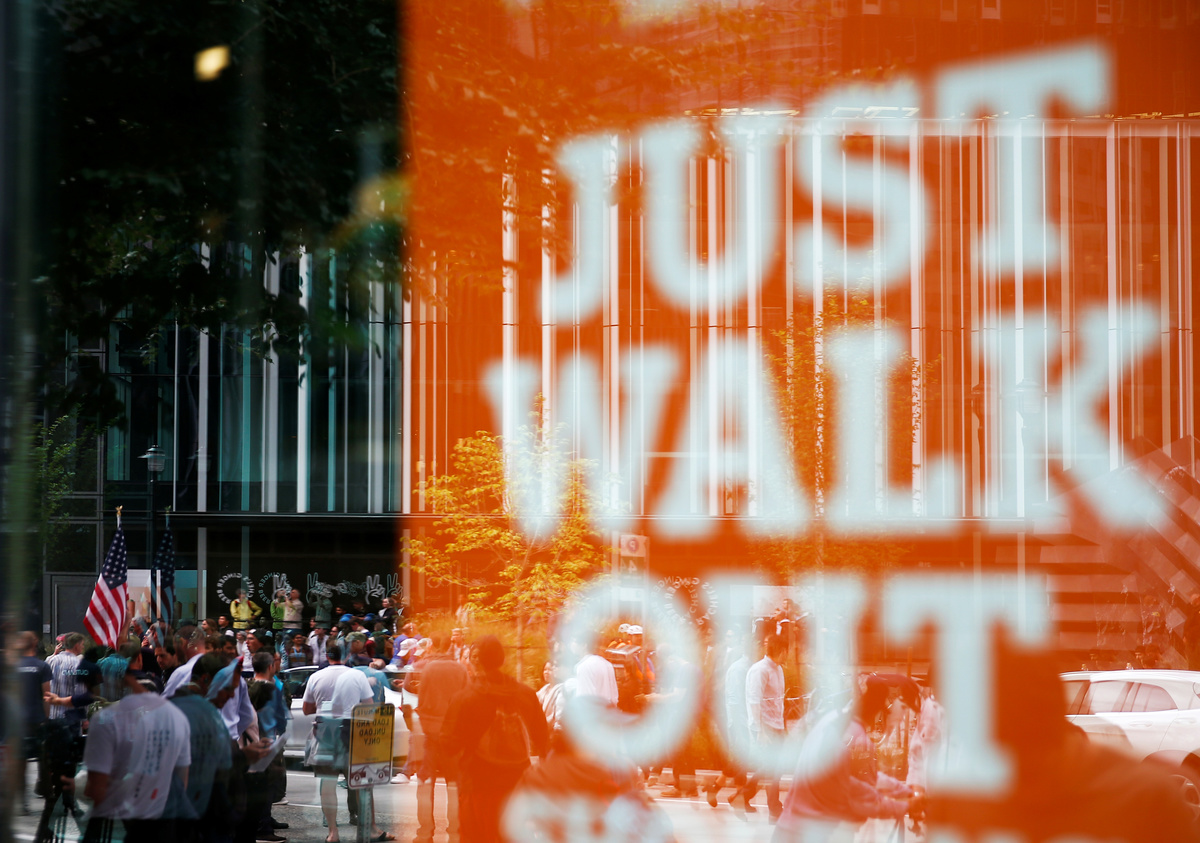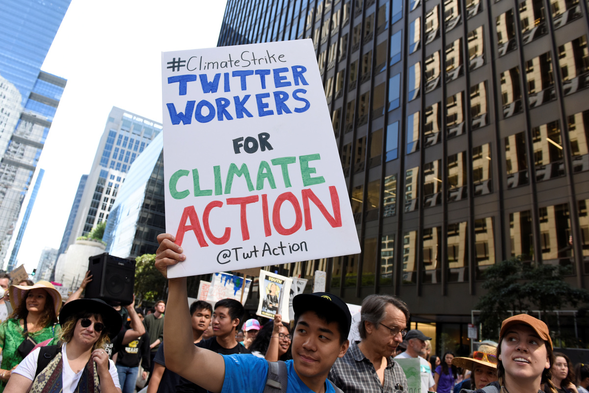 People protest during a Climate Strike march in San Francisco, U.S. September 20, 2019. REUTERS/Kate MunschTwitter employees participate in a Climate Strike march in San Francisco, U.S. September 20, 2019. REUTERS/Kate MunschGraffiti in front of BlackRock's offices during a Climate Strike march in San Francisco, U.S. September 20, 2019. REUTERS/Kate MunschYoung people protest outside of the San Francisco Federal Building during a Climate Strike march in San Francisco, U.S. September 20, 2019. REUTERS/Kate MunschYoung people protest outside of the San Francisco Federal Building during a Climate Strike march in San Francisco, U.S. September 20, 2019. REUTERS/Kate MunschPeople gather at Seattle City Hall during a Climate Strike march in Seattle, Washington, U.S. September 20, 2019. REUTERS/Lindsey WassonYoung people protest outside of the San Francisco Federal Building during a Climate Strike march in San Francisco, U.S. September 20, 2019. REUTERS/Kate MunschYoung people protest during a Climate Strike march in San Francisco, U.S. September 20, 2019. REUTERS/Kate MunschYoung people protest during a Climate Strike march in San Francisco, U.S. September 20, 2019. REUTERS/Kate MunschYoung people protest during a Climate Strike march in San Francisco, U.S. September 20, 2019. REUTERS/Kate MunschA marcher holds a sign reading "Enough already!" at Seattle City Hall during a Climate Strike march in Seattle, Washington, U.S. September 20, 2019. REUTERS/Lindsey WassonYoung people protest outside of the San Francisco Federal Building during a Climate Strike march in San Francisco, U.S. September 20, 2019. REUTERS/Kate MunschYoung people protest outside of the San Francisco Federal Building during a Climate Strike march in San Francisco, U.S. September 20, 2019. REUTERS/Kate MunschYoung people protest outside of the San Francisco Federal Building during a Climate Strike march in San Francisco, U.S. September 20, 2019. REUTERS/Kate MunschYoung people protest outside of the San Francisco Federal Building during a Climate Strike march in San Francisco, U.S. September 20, 2019. REUTERS/Kate MunschPeople gather at Seattle City Hall during a Climate Strike march in Seattle, Washington, U.S. September 20, 2019. REUTERS/Lindsey WassonJeff Quinlan-Galper, a software engineer for Google, holds a sign with a quote from climate activist Greta Thunberg during a Climate Strike walkout and march in Seattle, Washington, U.S. September 20, 2019. REUTERS/Lindsey WassonStriking tech workers are reflected in the Amazon Spheres during a Climate Strike walkout and march in Seattle, Washington, U.S. September 20, 2019. REUTERS/Lindsey WassonAmazon employees hold an "Amazon Employees for Climate Justice" sign during a Climate Strike march in Seattle, Washington, U.S. September 20, 2019. REUTERS/Lindsey WassonAmazon employees Preethy Thomas and Yuan Dong smile as they hold signs during a Climate Strike march and walkout at the Amazon Spheres in Seattle, Washington, U.S. September 20, 2019. REUTERS/Lindsey WassonAmazon employees hold signs asking the company to reach zero emissions by 2030 outside the Amazon Spheres during a Climate Strike walkout and march in Seattle, Washington, U.S. September 20, 2019. REUTERS/Lindsey WassonAmazon employees hold signs asking the company to reach zero emissions by 2030 outside the Amazon Spheres during a Climate Strike walkout and march in Seattle, Washington, U.S. September 20, 2019. REUTERS/Lindsey WassonTech workers hold signs as they participate in a Climate Strike walkout and march on 5th Avenue in Seattle, Washington, U.S. September 20, 2019. REUTERS/Lindsey WassonGoogle employees hold signs as they join Amazon employees walking out from their jobs during a Climate Strike near the Amazon Spheres in Seattle, Washington, U.S. September 20, 2019. REUTERS/Lindsey WassonYoung people protest outside of the San Francisco Federal Building during a Climate Strike march in San Francisco, U.S. September 20, 2019. REUTERS/Kate MunschYoung people protest outside of the San Francisco Federal Building during a Climate Strike march in San Francisco, U.S. September 20, 2019. REUTERS/Kate MunschYoung people protest outside of the San Francisco Federal Building during a Climate Strike march in San Francisco, U.S. September 20, 2019. REUTERS/Kate MunschYoung people protest outside of the San Francisco Federal Building during a Climate Strike march in San Francisco, U.S. September 20, 2019. REUTERS/Kate MunschA sign is seen during a Climate Strike march in San Francisco, U.S. September 20, 2019. REUTERS/Kate MunschTech workers walking out from their jobs are reflecting in an Amazon Go sign next to the Amazon Spheres during a Climate Strike walkout and march in Seattle, Washington, U.S. September 20, 2019. REUTERS/Lindsey WassonAn attendee holds a sign asking Amazon to reach zero emissions by 2030 outside the Amazon Spheres during a Climate Strike walkout and march in Seattle, Washington, U.S. September 20, 2019. REUTERS/Lindsey WassonButtons are seen on display during a Climate Strike march in San Francisco, U.S. September 20, 2019. REUTERS/Kate Munsch
