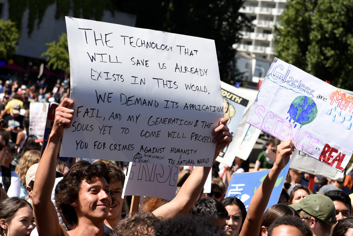 Youth rally in front of the Ferry Building after a Climate Strike march in San Francisco, U.S. September 20, 2019. REUTERS/Kate Munsch