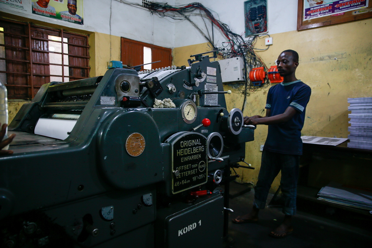A whirring machine churns out prints at the Gaza Printing Press in the northeastern Nigerian city of Maiduguri while owner Garba Zango supervises. The copies are perfect, but his costs have lately gone through the roof.