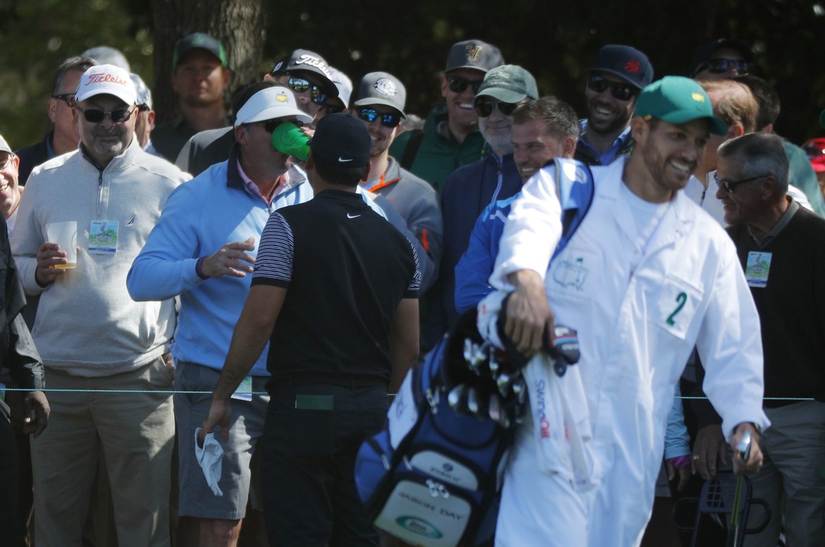 AUGUSTA, Georgia (Reuters) - There is no water anywhere near the opening hole at Augusta National but Jason Day found a way to get his ball wet after sending a shot into a patron's cup of beer on Thursday.