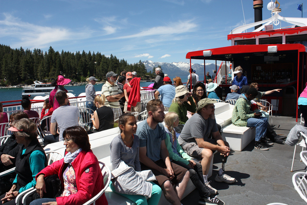 Emerald Bay strikes me as the boat tour's highlight, and as the Dixie II eases back onto the main body of the lake, most passengers seem to be settling in their deck chairs or disappearing to one of the lower decks for lunch. The friendly man wraps up the Tahoe primer by bringing us up to date.