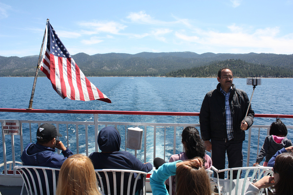 It is easy to get lost in the scenery from this 360-degree vantage from atop one of the planet's prettiest bodies of water, but there is learning to do. We are "experiencing" Lake Tahoe, remember. The friendly man is back, giving us the basics, so take a deep blue breath and follow along.