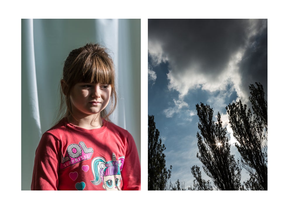 Each photographer captured their unique perspective on the conflict they’re covering and contributed to a series of diptychs. They combine the portraits of six children with pictures of the sky above them, representing the fragility of their situation and the shadow war casts over their childhood.