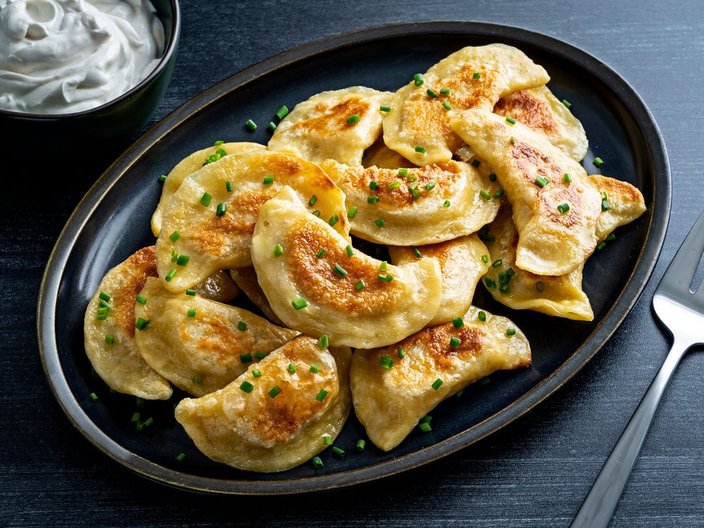 Dumplings stuffed with potato and cheese are beloved throughout central and eastern Europe, and in Ukraine may also be known as vareniki. Recipes for them are often scaled to feed a crowd, but the assembled, uncooked dumplings freeze well, and can then be cooked quickly for a hearty side dish. Serve 2 or 3 as a starter or side, or add a few more as a filling main.