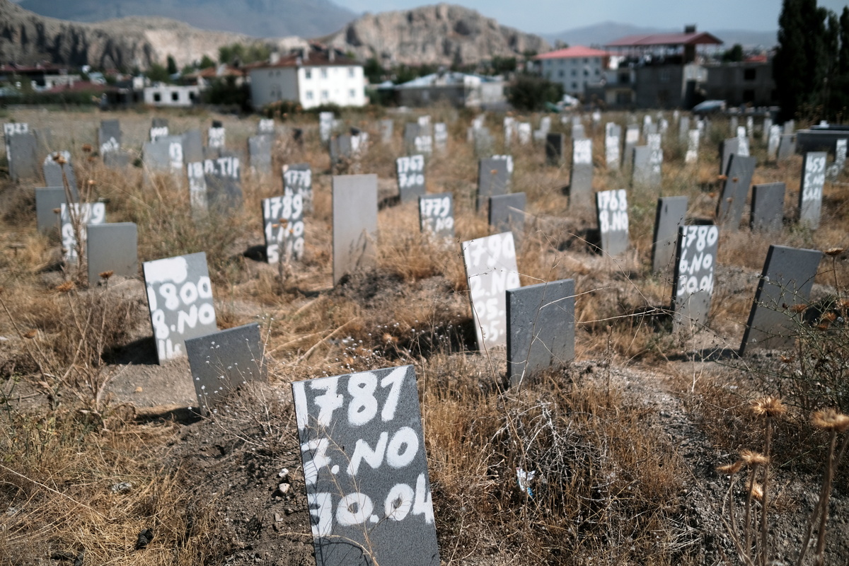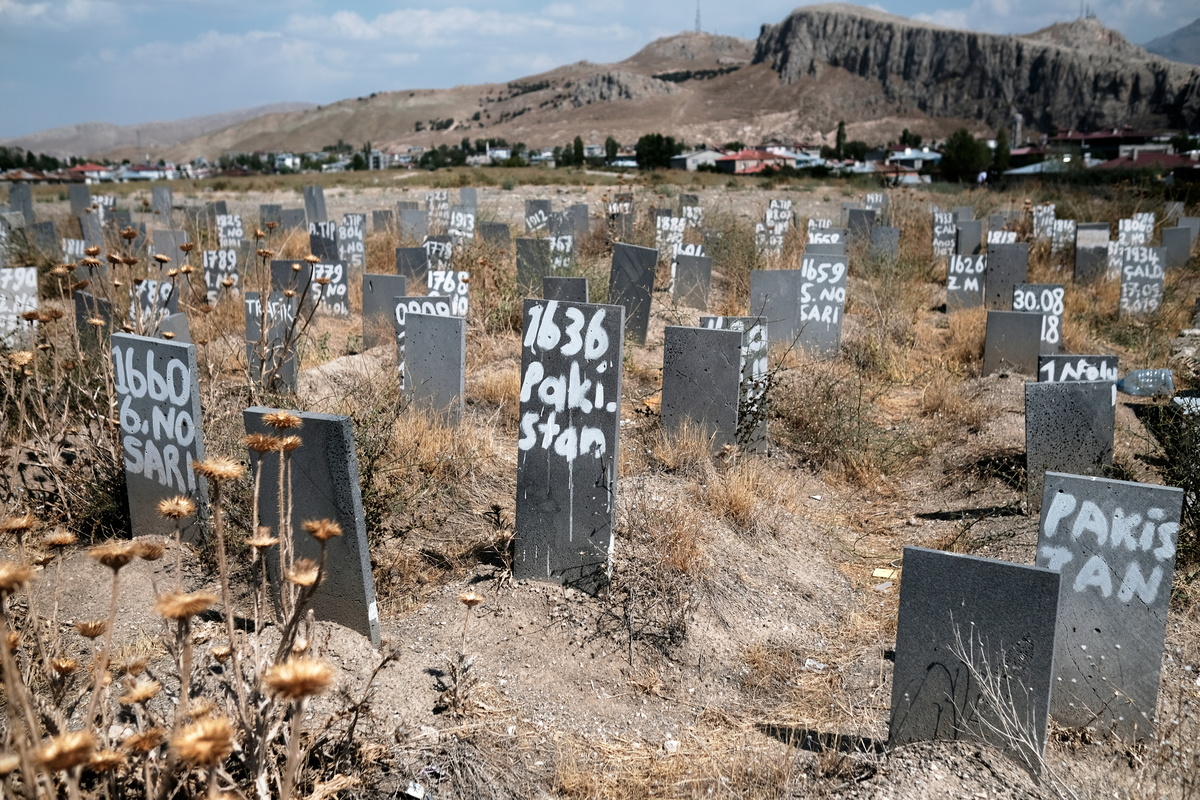 Officials say around 300,000 Afghans are also currently in Turkey - some have been there for several years. They include an estimated 120,000 unregistered people, although the opposition say the number is far higher. Gravestones for those who have died after crossing the border scatter a cemetery in the city.