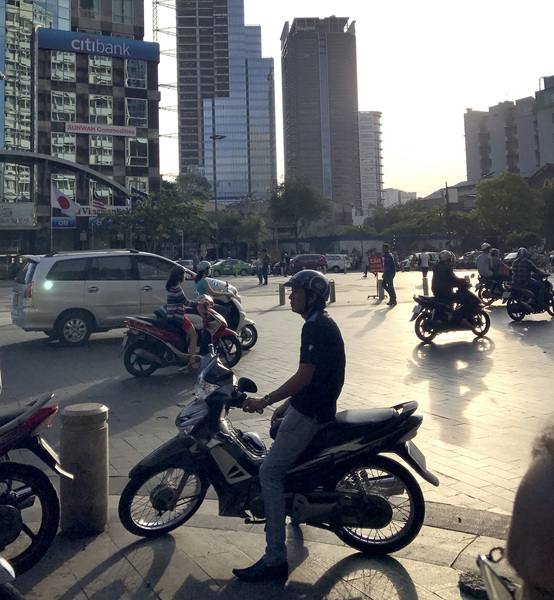 Below, mopeds and scooters rule the streets, zipping by with a symphony of honks and beep-beeps. My cousin tells me to quit taking so many photos, for fear someone might run up and steal my iPhone.