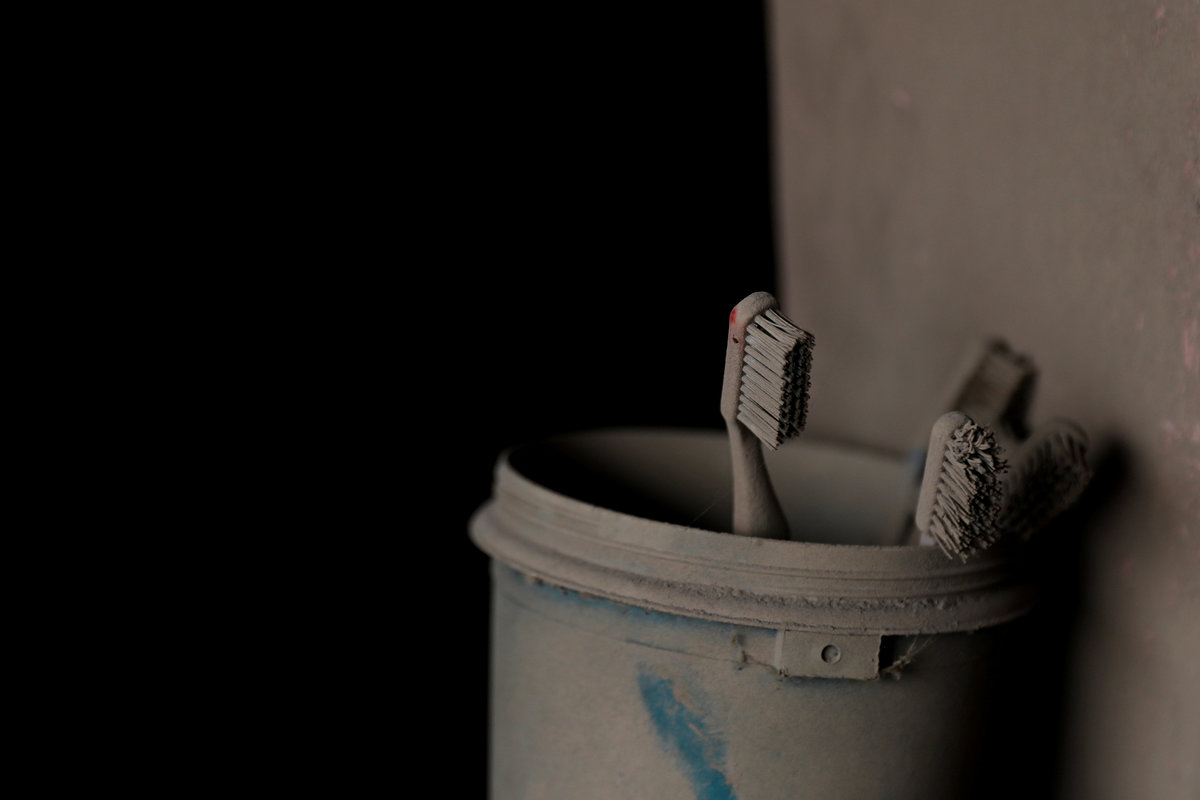 Toothbrushes are seen in a house affected by the eruption of the Fuego volcano at San Miguel Los Lotes in Escuintla, Guatemala, June 8, 2018. REUTERS/Carlos Jasso