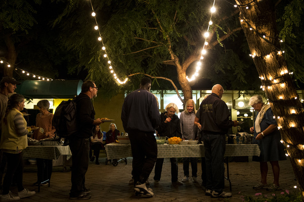 At one of the final dinners this month, 50 people from several Southern California communities lined up on a brick patio festooned with lights to sample a cornucopia of home-cooked food: hors d'oeuvre platters, grilled chicken, ham, salads, fruit, mac and cheese, lasagna, mashed potatoes and an entire dessert table.
