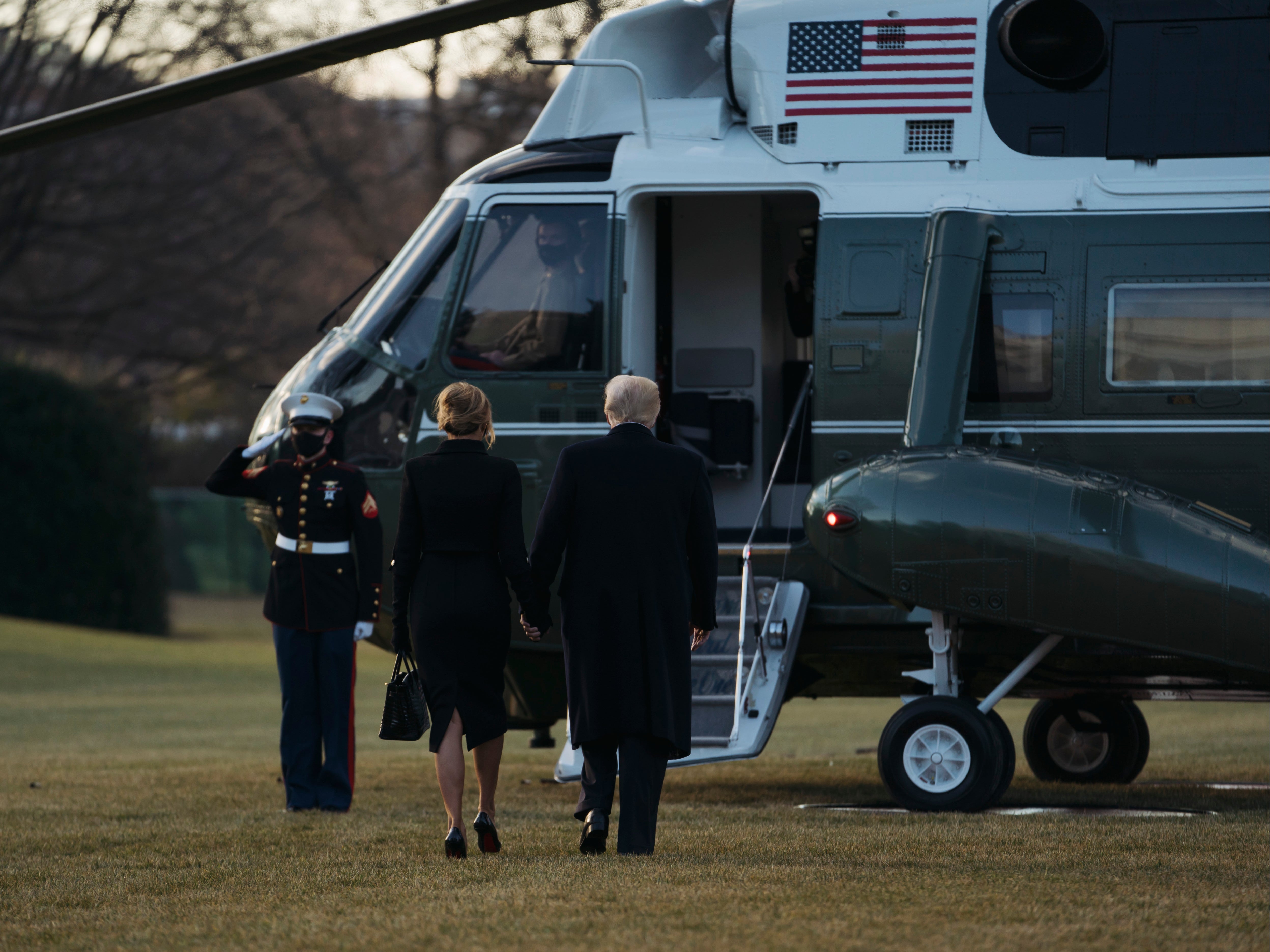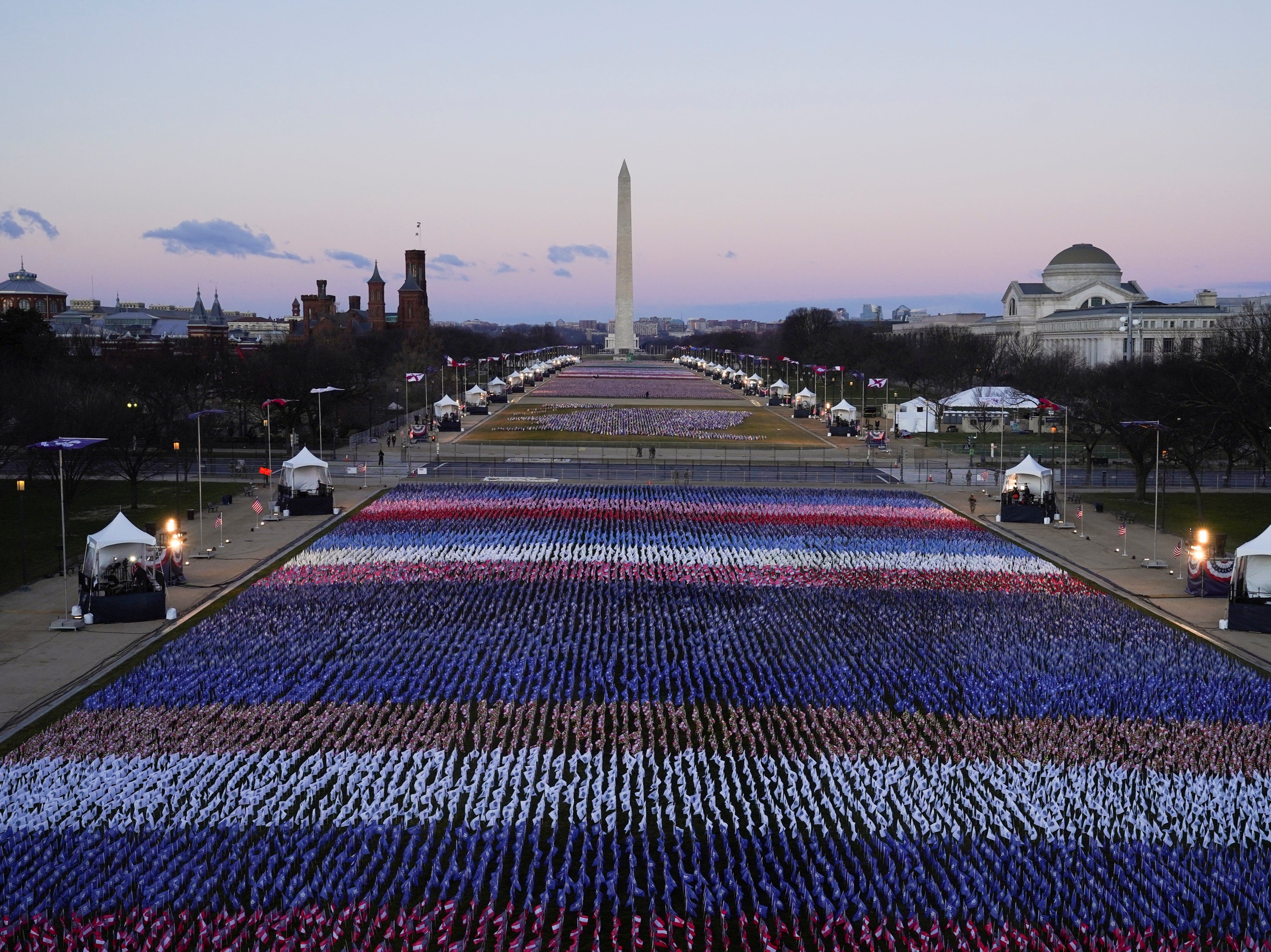 Nearly 200,000 American flags are seen in the early hours of Inauguration Day on the National Mall as part of a ‘Field of Flags’ exhibition to represent those not able to attend due to the Covid-19 pandemic (AFP via Getty Images)The Washington Monument was closed to members of the public for Joe Biden’s inauguration amid security concerns following an attack on the Capitol by pro-Trump rioters on 6 January (REUTERS)Donald Trump and Melania Trump depart the White House for the last time on the morning of Inauguration Day. The couple is eschewing the tradition of meeting the incoming first family and will not attend president-elect Biden’s inauguration. Ms Trump has not given incoming first lady, Jill Biden, a tour of the private residence and has reportedly not been in touch with her at all (AFP via Getty Images)Donald Trump and Melania Trump hold hands as they prepare to depart the White House on Marine One to Florida several hours ahead of the inauguration ceremony. Mr Trump is the first president in more than 150 years to refuse to attend their successor's inauguration (Getty Images)Members of Donald Trump’s family including senior advisors Ivanka Trump and Jared Kushner stand on the tarmac at Joint Base Andrews in Maryland as they arrive for US President Donald Trump's departure ceremony (AFP via Getty Images)Joe Biden and Jill Biden attend services at the Cathedral of St Matthew the Apostle ahead of the presidential inauguration ceremony. Once inaugurated, Mr Biden will be the second Catholic president in US history and the first since John F Kennedy (Getty Images)US National Guardsmen stand on a closed street outside the Capitol Building. Some 25,000 National Guard troops have been brought in from across the country to ensure security on Inauguration Day, replacing the huge crowds of tourists that would usually gather in the nation’s capital to welcome a new president (Yegor Aleyev/TASS)Security is set up along Pennsylvania Avenue before the 59th Presidential Inauguration. Security officials have assured that there will be extremely tight security around the entire capital region on Inauguration Day after pro-Trump rioters breached the Capitol on 6 January (AP)Speaker of the House Nancy Pelosi and her husband ahead of Joe Biden’s arrival at the Capitol for the inauguration ceremony (EPA)Former Vice President Dan Quayle arrives for the inauguration ceremony of Joe Biden as the 46th President of the United States on the West Front of the Capitol (AP)Joe Biden, Kamala Harris, Jill Biden, and Doug Emhoff wave as they arrive on the East Front of the Capitol for the inauguration ceremony (Getty Images)Former president Bill Clinton arrives with former Secretary of State Hillary Clinton for the inauguration of Joe Biden as the 46th President of the United States on the West Front of the Capitol (Getty Images)Former President George W Bush and his wife Laura Bush arrive for the inauguration ceremony of Joe Biden as the 46th President of the United States on the West Front of the Capitol (REUTERS)Former President Barack Obama and former First Lady Michelle Obama arrive at the inauguration of Joe Biden as the 46th President of the United States on the West Front of the Capitol (Getty Images)Vice President Mike Pence and Karen Pence arrive at the inauguration of Joe Biden on the West Front of the US Capitol. Mr Pence is attending the inauguration ceremony despite the absence of President Donald Trump, who left Washington before the ceremony began (AP)Vice-president elect Kamala Harris and her husband Doug Emhoff wave as they make their entrance to the inaugural ceremony on the West Front of the Capitol (REUTERS)President-elect Joe Biden and Jill Biden arrive at his inauguration ceremony on the West Front of the Capitol (Getty Images)Donald Trump and Melania Trump arrive at Palm Beach International Airport in West Palm Beach, Florida after departing Washington before the inauguration ceremony of Joe Biden (REUTERS)Senator Amy Klobuchar speaks at the inauguration of US President-elect Joe Biden on the West Front of the US Capitol (Getty Images)Lady Gaga sings the National Anthem during the inauguration ceremony on the West Front of the Capitol. Ahead of the inauguration on 19 January, Gaga said she hoped the ceremony would be ‘a day of peace for all Americans.’ (REUTERS)Kamala Harris is sworn in as vice president, becoming the first woman to hold the office in the nation’s history, as well as the first Black woman and first woman of South Asian descent to hold the title. Spouse Doug Emhoff holds the bible and also makes history in becoming the first ever first gentleman (REUTERS)Joe Biden is sworn in as the 46th president of the United States as his wife Jill Biden holds the bible. The president welcomed a ‘day of history and hope’ after taking Oath of Office saying: ‘This is America’s day. This is democracy’s day. A day of history and hope’ (REUTERS)Joe Biden delivers a speech after being sworn in as the 46th President of the United States during which he addressed the severity of the coronavirus pandemic across the US, the rise of political extremism, and outlined a path towards unity for the nation (REUTERS)Amanda Gorman recites a poem during the inauguration of Joe Biden, referencing Biblical scripture and at times echoing the oratory of John F Kennedy and the Rev Martin Luther King Jr as she asked: ‘Where can we find light/In this never-ending shade?’ (REUTERS)Attendance at Joe Biden’s inauguration was slashed to limited numbers in light of the coronavirus pandemic, which has claimed the lives of more than 400,000 Americans (Getty Images)Joe Biden and his wife Jill Biden watch a military pass in review ceremony on the East Front of the Capitol at the conclusion of the inauguration ceremonies (AP)Joe Biden signs three documents including an inauguration declaration, cabinet nominations, and sub-cabinet nominations in the President’s Room at the Capitol 