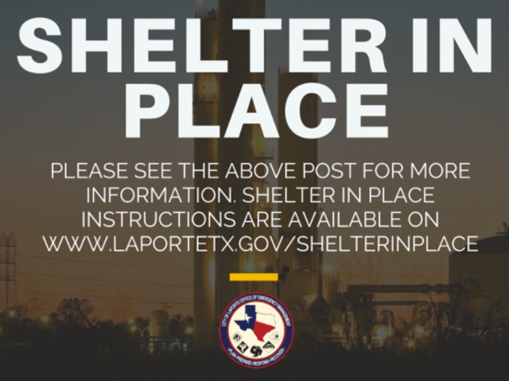 A shelter in place order was also given for residents east of the bay area in La Porte. The Office of Emergency Management in La Porte issued a statement advising people to immediately go into their homes and to turn off their air conditioners.
