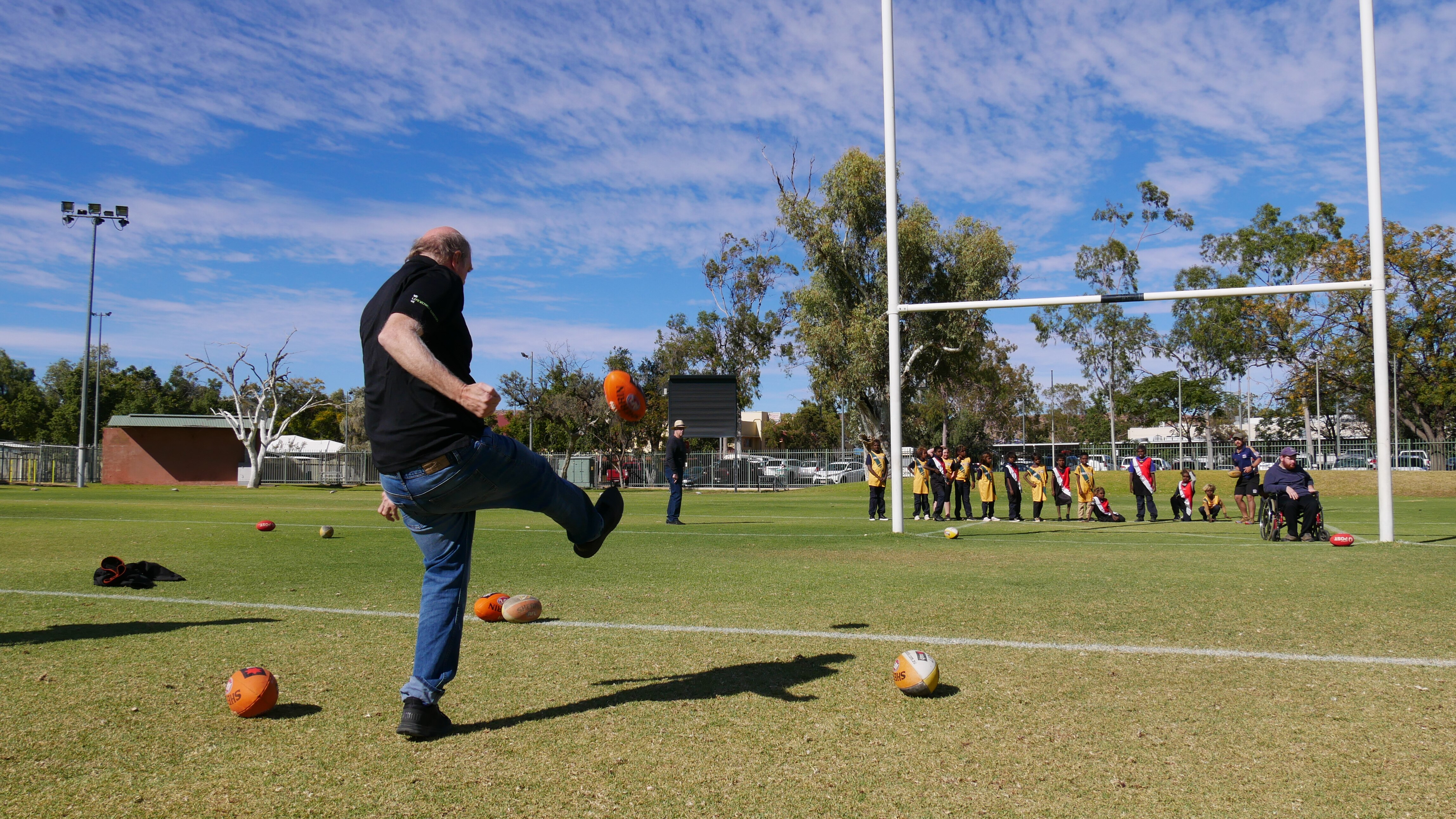 Now, Mr Namatjira-McMillan plays AFL every Wednesday, as part of a new program in Alice Springs for people who want to be involved in sport but can't engage with existing clubs.