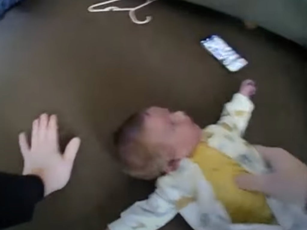 Police body camera footage has shown an officer saving the life of a baby when it suddenly stopped breathing.
