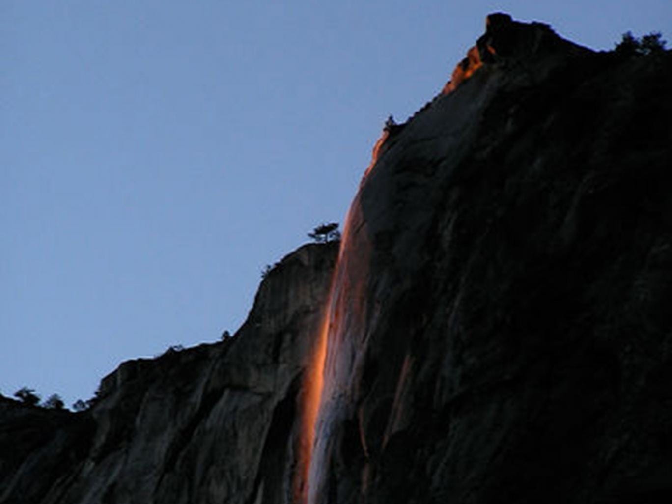 The phenomenon appears to be a cascade of lava falling from east of the the El Capitan rock formation.