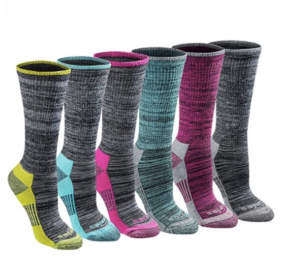 Keep your feet happy with these moisture-wicking crew socks with arch compression for extra comfort. They have earned 4.6 stars overall after more than 15,000 reviews, and come in a range of color sets to choose from.