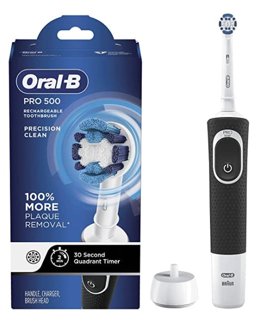 The rechargeable toothbrush removes up to 100% more plaque than a regular manual brush. The built-in two minute timer ensures you brush for long enough, and the 30-second signal helps you reach all of the areas of your mouth. This set comes with a handle, charger, and brush head and it will likely sell out fast (be sure to click the coupon box to get the full discount for Prime Day).