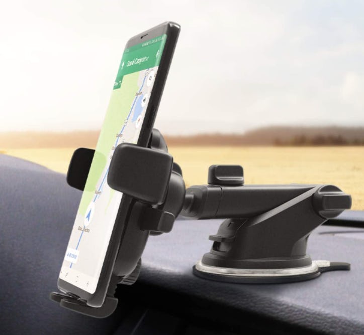 This dashboard and windshield car mount can pivot 225 degrees so you can point it exactly where you need to see directions, change the music, or answer a phone call while you're in your car. The suction design is secure and the universal clamp holds phones up to 3.5 inches in width. This phone mount has a cult-following on Amazon, with 49,000 reviews and has earned a 4.5-star overall rating.