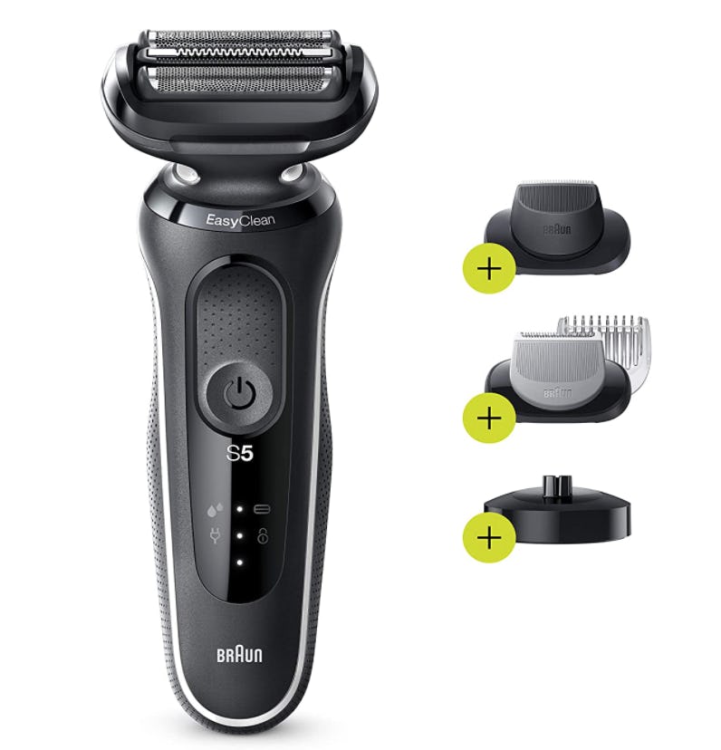 With five blades and a powerful motor, this electric razor will give you a smooth and quick shave. The highly rated razor has a sensor that adjusts motor speed based on detected hair density, so you end up with an even shave. Plus, it works just as well for a dry or wet shave.