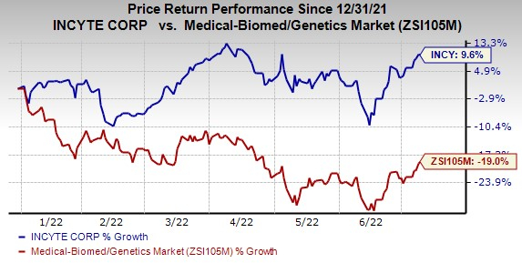 Incyte (NASDAQ:INCY) has had a good run so far this year. It is one of the few biotech stocks that has outperformed the industry in this time frame.