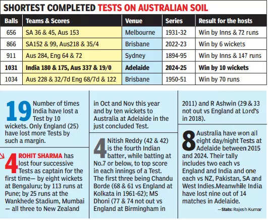 Nevertheless, that this is the shortest completed Test between these two teams in terms of balls - it was all over in 1031 deliveries, beating the Indore record of 1135 balls - indicates India have offered up a perfect case study in how to scramble the winnability of a unit. Their incredible 295-run comeback win in Perth is now history, its first-mover advantage frittered away. The backs are to the wall again in this five-game series.