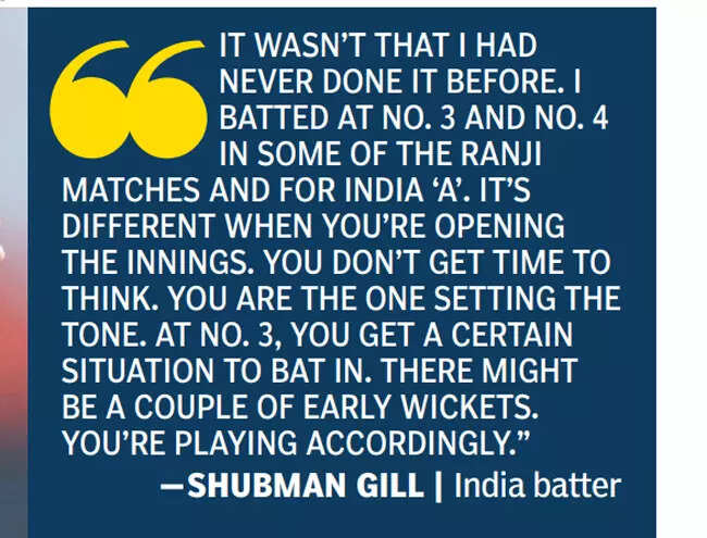 “It wasn’t that I had never done it before. I batted at No. 3 and No. 4 in some of the Ranji matches and for India ‘A’. It’s different when you’re opening the innings. You don’t get time to think. You are the one setting the tone. At No. 3, you get a certain situation to bat in. There might be a couple of early wickets. You’re playing accordingly,” Gill reminded everyone on Wednesday