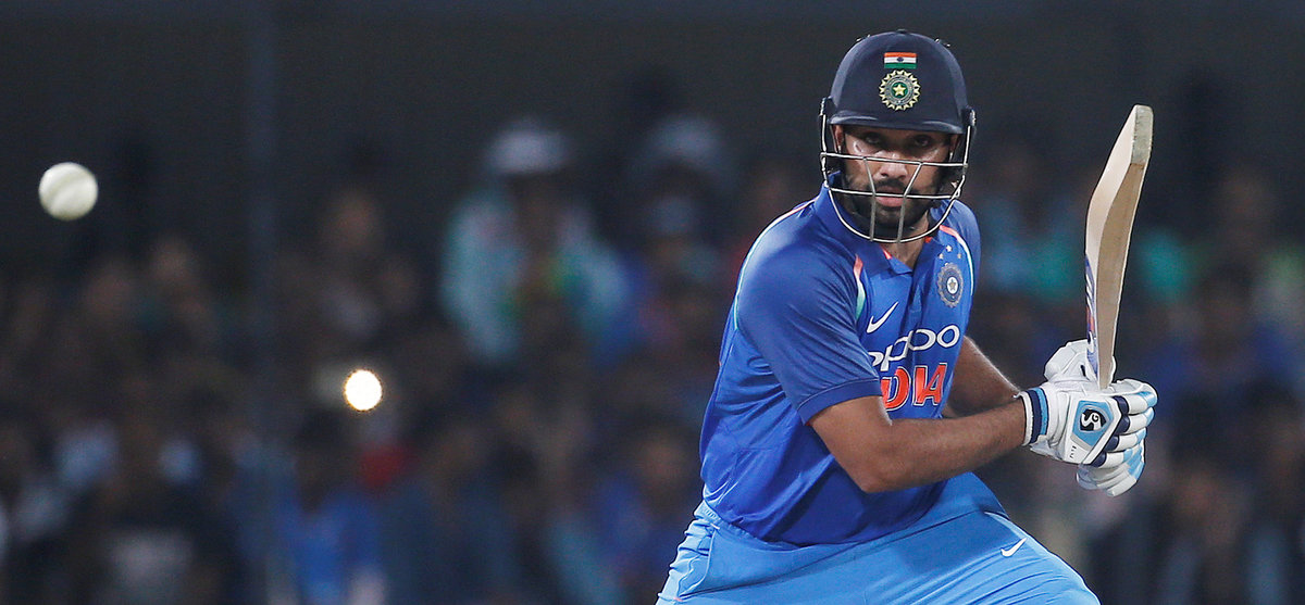 The opener smacked four sixes, one of them sailed over the stadium, as he and Ajinkya Rahane (70) scored 139 runs to take the hosts nearly halfway down the target.