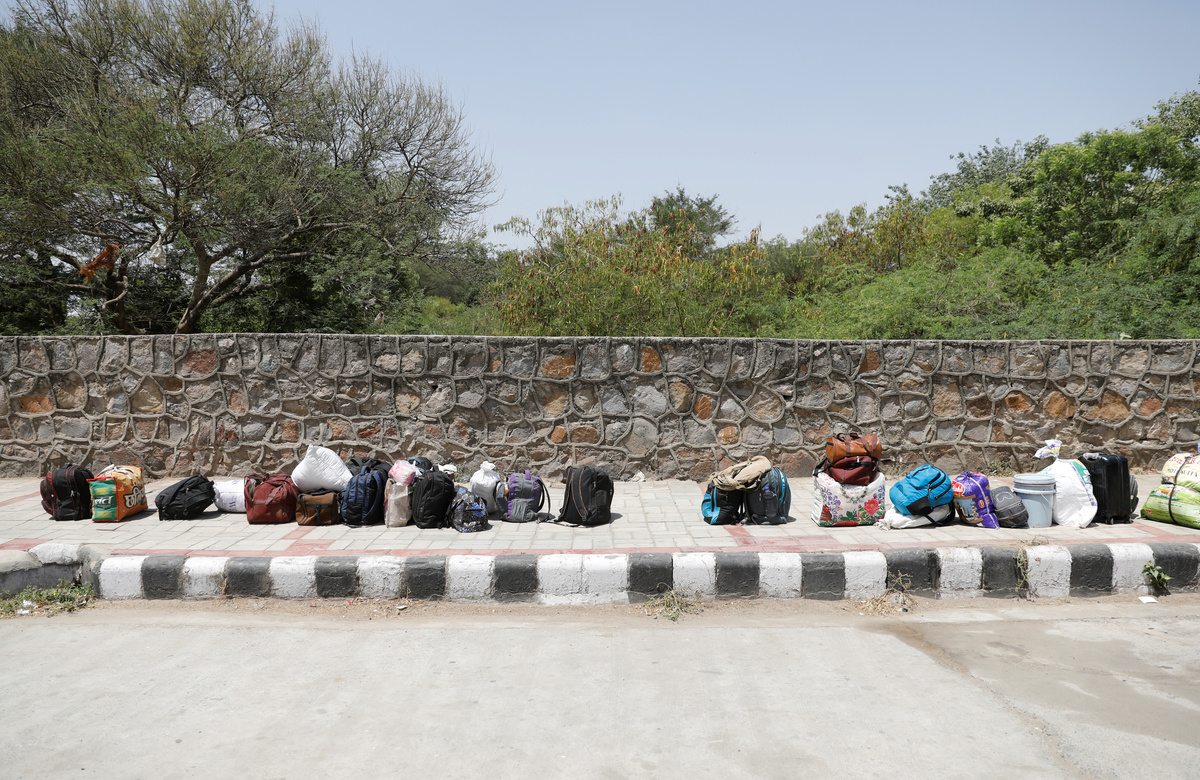 Belongings of migrant workers and their families, who wait to get on a bus to reach a railway station to board a train to their home state of Uttar Pradesh, are seen on the ground during an extended lockdown to slow the spreading of the coronavirus disease (COVID-19), in New Delhi, India, May 26, 2020. REUTERS/Adnan Abidi