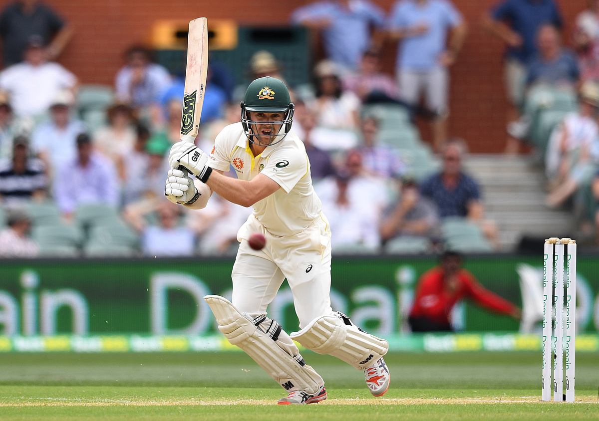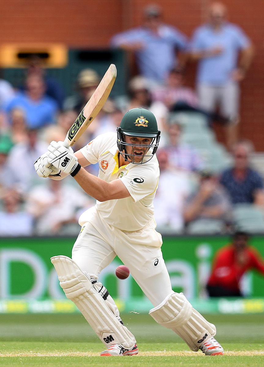 Australia's batsman Travis Head (C) plays a shot on day two of the first test match between Australia and India at the Adelaide Oval in Adelaide, Australia, December 7, 2018. AAP/David Mariuz/via REUTERS