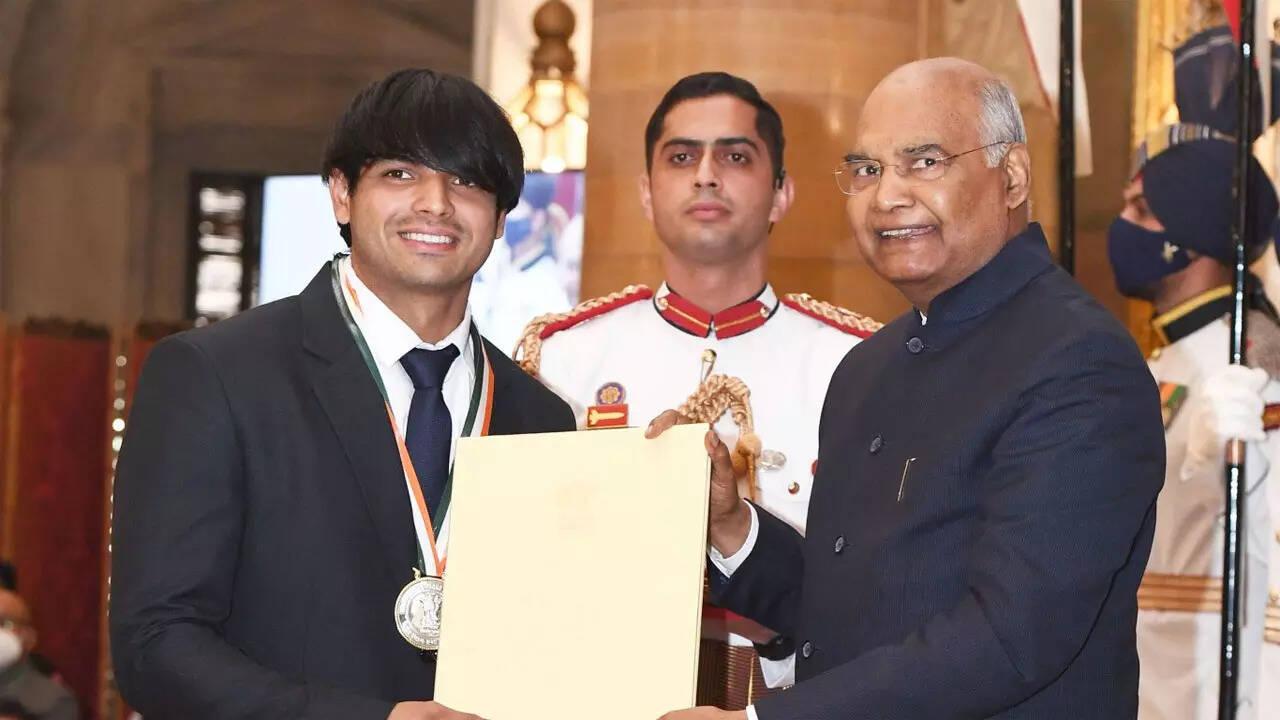 NEW DELHI: Olympic champion javelin thrower Neeraj Chopra, India opener Shikhar Dhawan, veteran woman cricketer Mithali Raj and history-making Paralympic stars shared the spotlight as an unprecedented 12 sportspersons were presented with India's highest sporting honour -- the Major Dhyan Chand Khel Ratna -- by President Ram Nath Kovind here on Saturday.