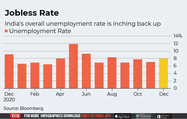 The jobless rate increased to 7.91 per cent last month, from 7 per cent in November, rising in both urban and rural areas, according to the data from the Centre for Monitoring Indian Economy (CMIE), a private research firm.