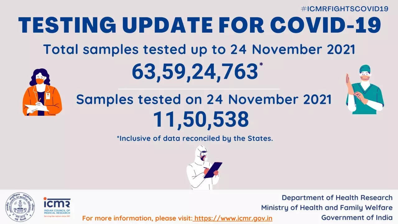 More than 63.59 crore samples were tested for Covid-19 up till November 24